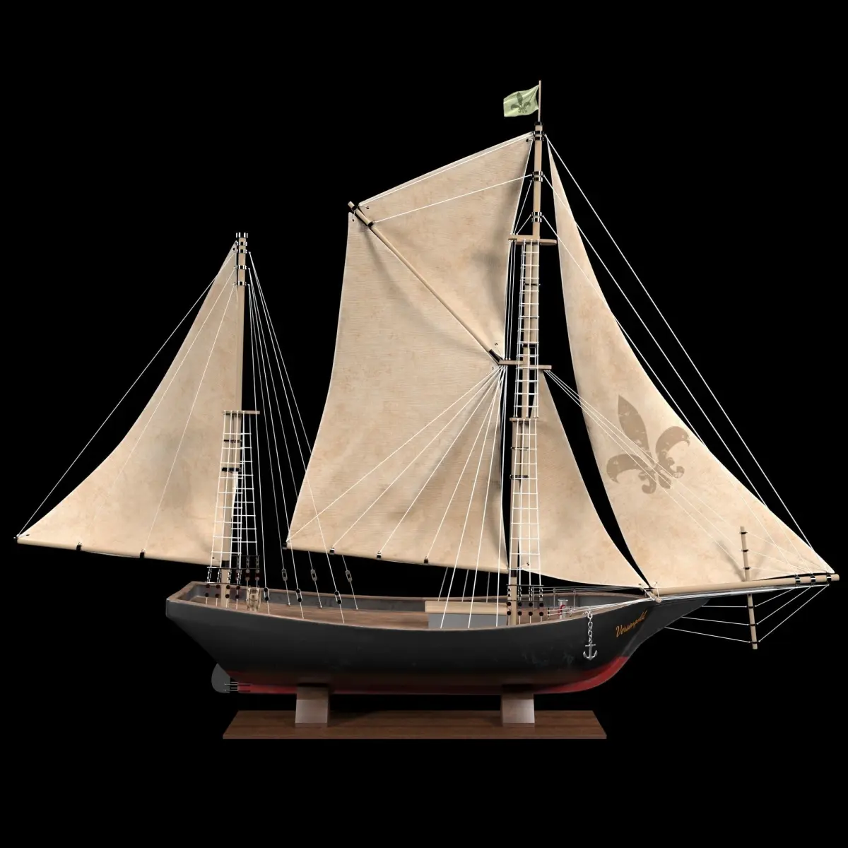 3d model of ship Versengold. Created in 3Ds Max 2017 and Corona 5.In maps folder you can find 2 sets of textures for main body: clean body and with gray addition. This model will be perfect addition to your interior renders and design.Hope zou like mz model. Have a great renders!