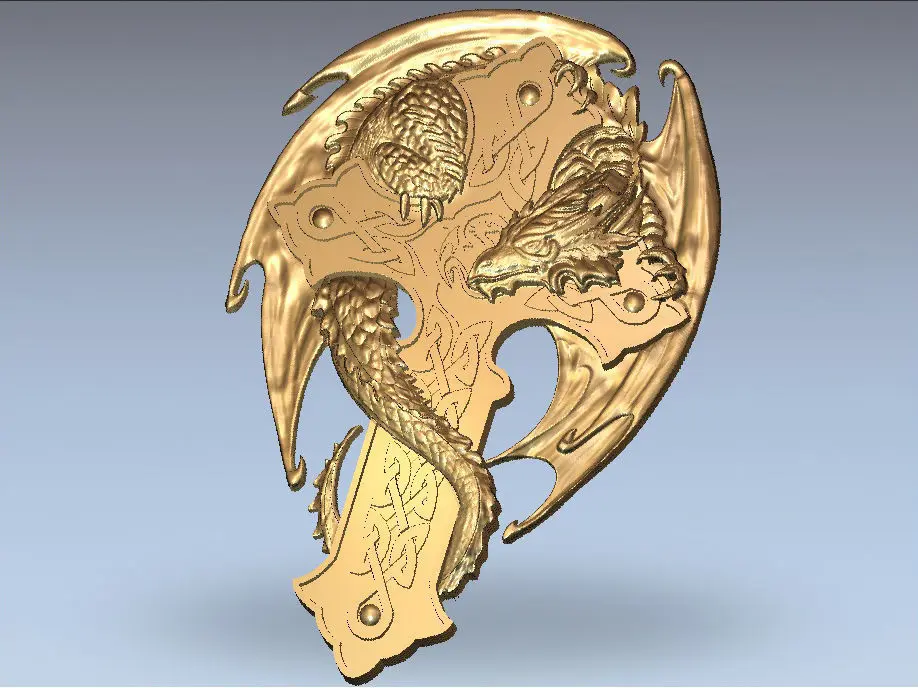 3d model cnc reliefs dragon sculpture art decor, exterior gold inlaid luxurious. Classic model of luxury gold sculpture.