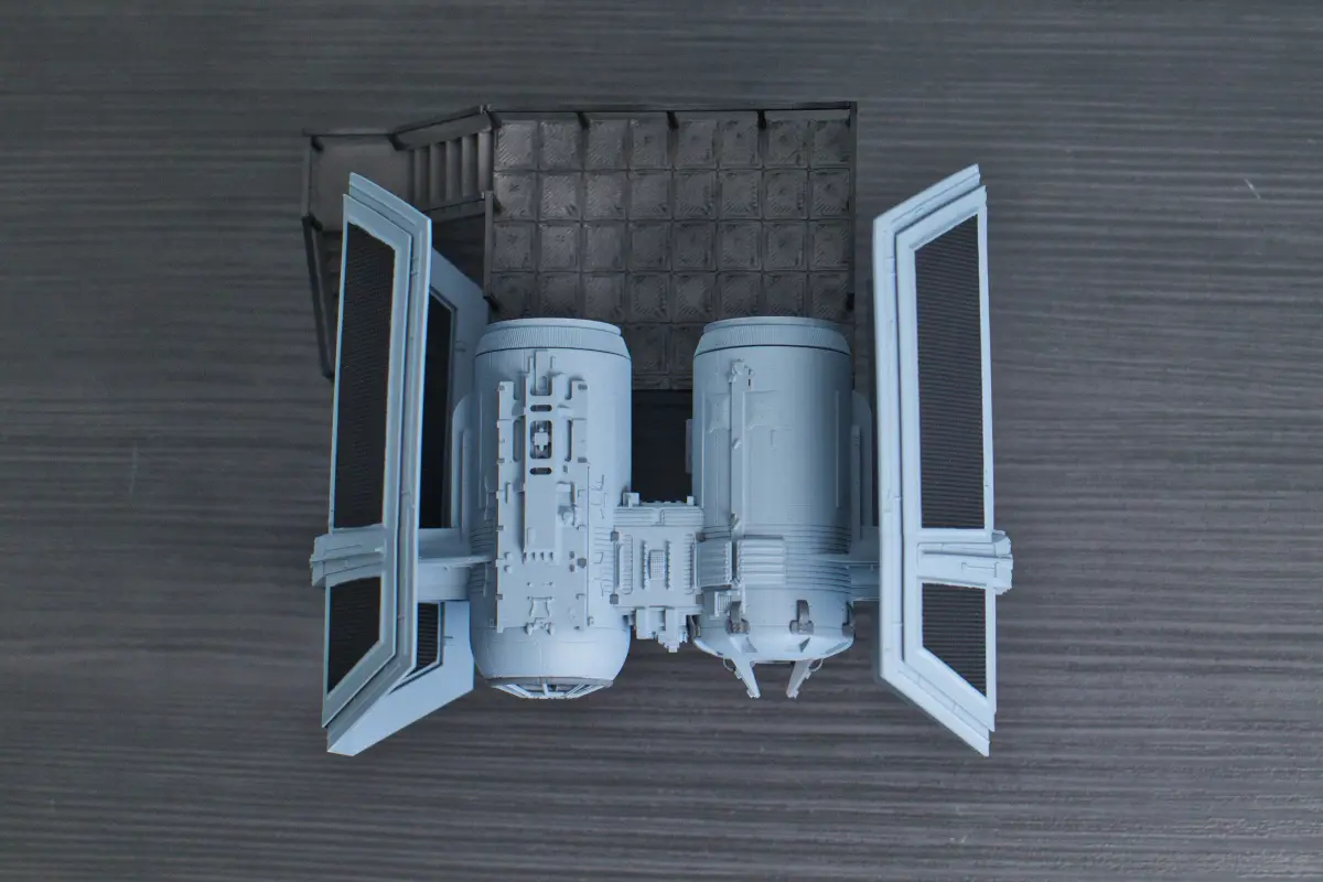 The 3D model is highly detailed to replicate the original studio model that was used for filming. Original model kit parts, that were used for the kit bashing, were measured and taken as reference for the design process of the 3D-model.The STL-files have a high resolution to achieve great print results.