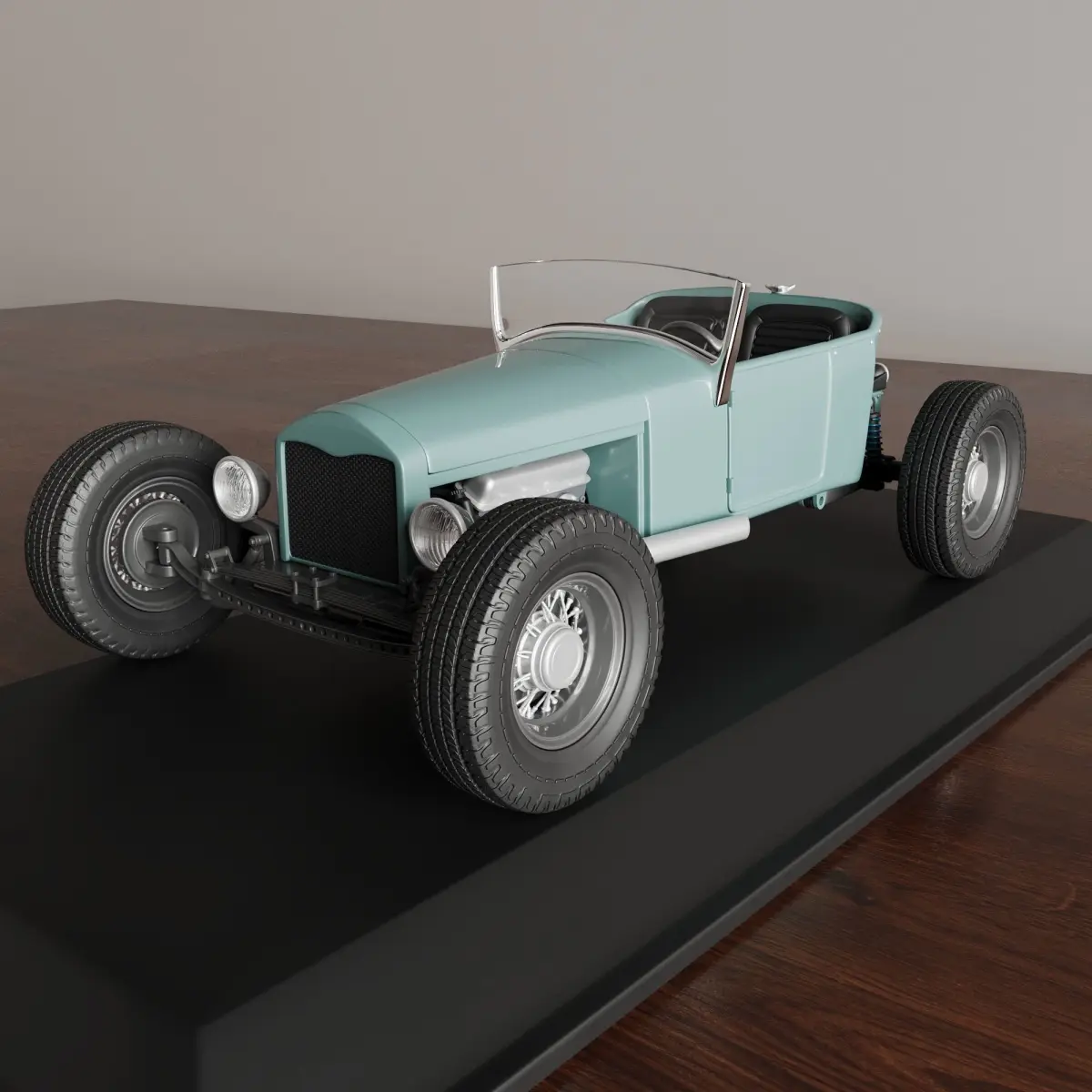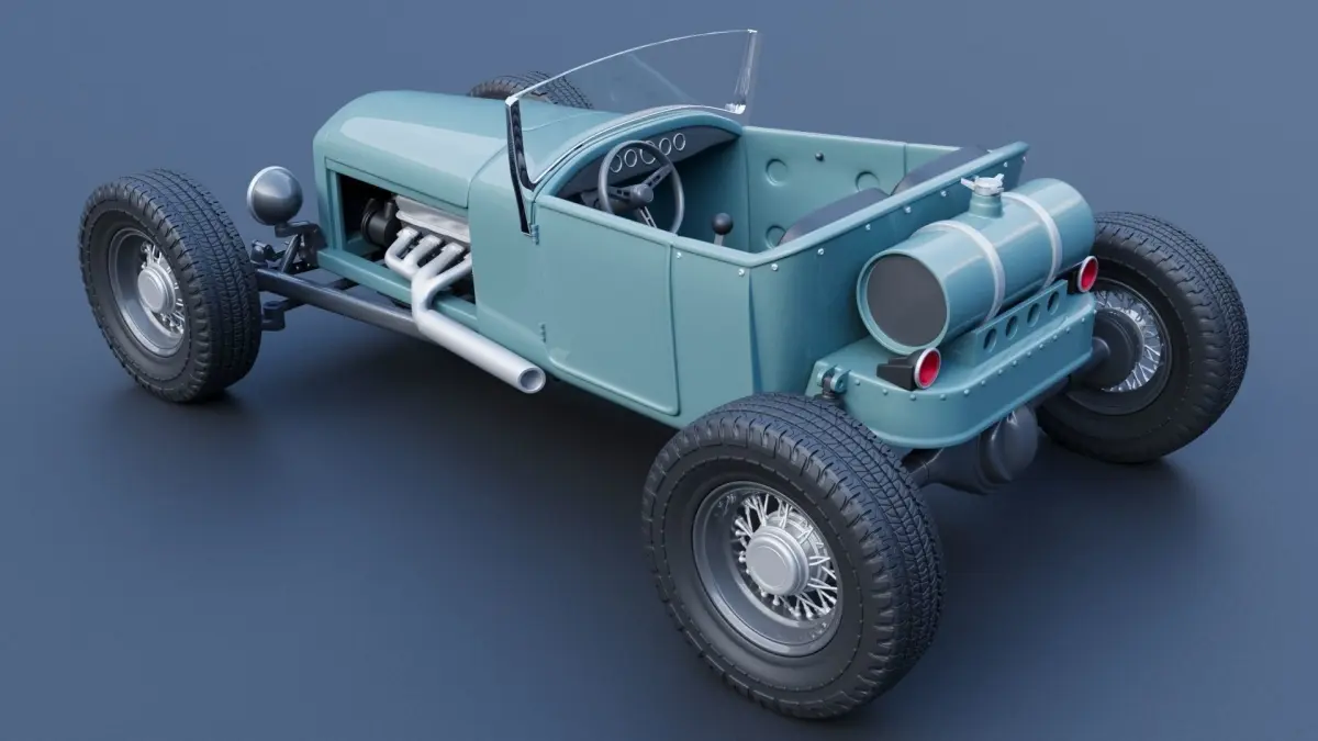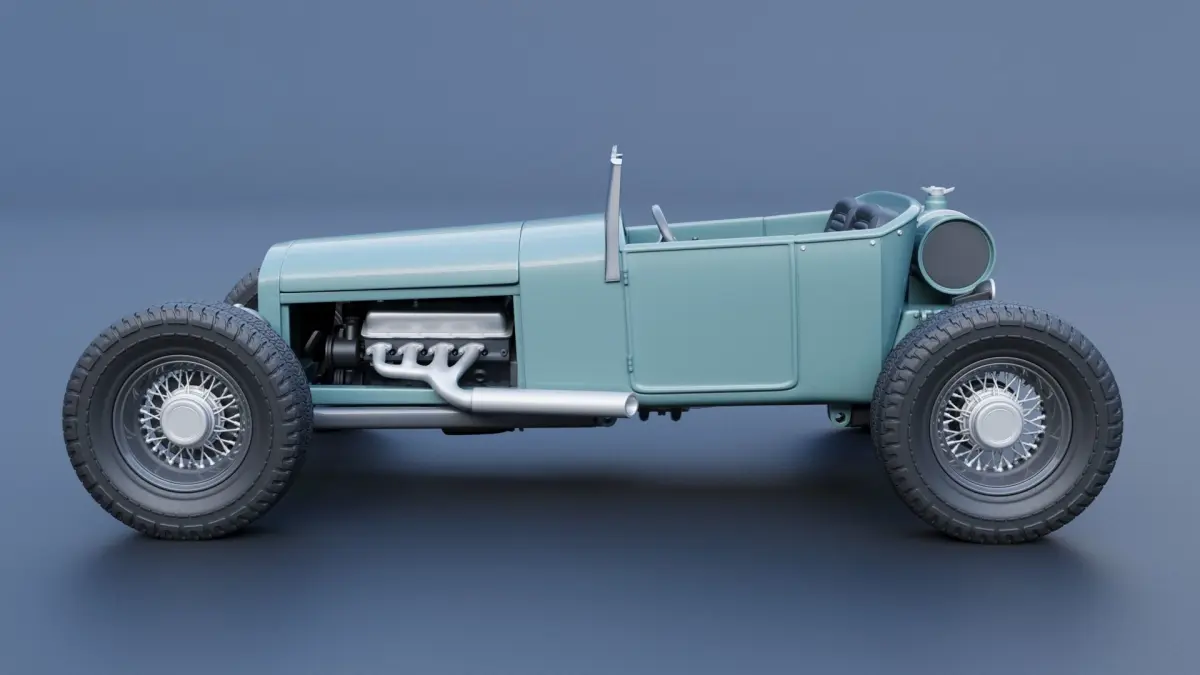 The model includes •Body •Hood •Interior parts •Chassis parts •Engine parts •Wheels •Tires •Windows and glass for headlights and taillights