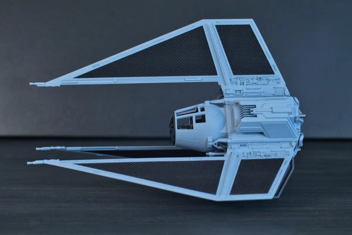 This is the TIE Phantom, first seen in the video game Rebel Assault II.It is designed after the originally used video game model.The scale is 1/72 to fit in with your Bandai/Finemolds collection.