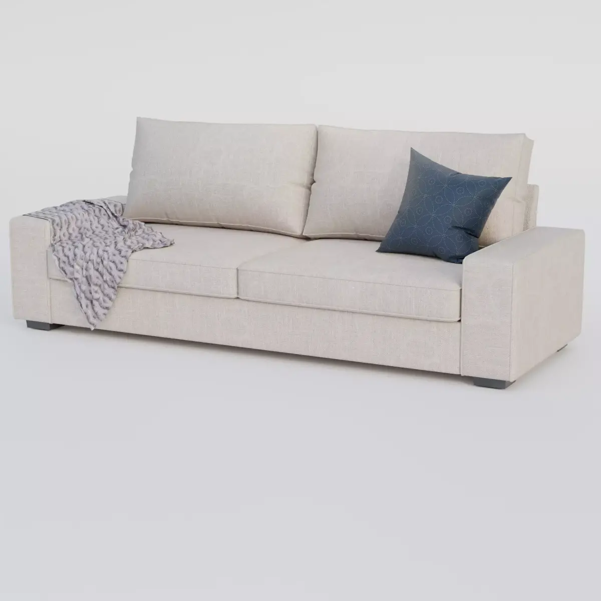 This is a detailed 3D model of a modern sofa designed for interior visualization and close up rendering. The geometry suits high quality renders and keeps correct real world proportions. All parts include finished textures, with fabric materials prepared for realistic lighting and shading.
