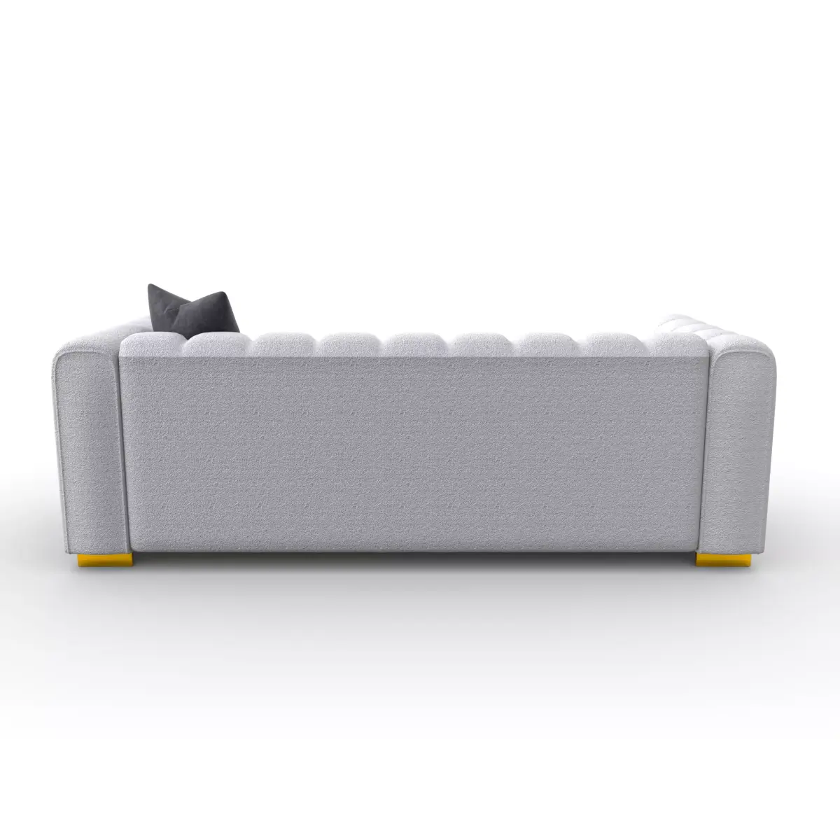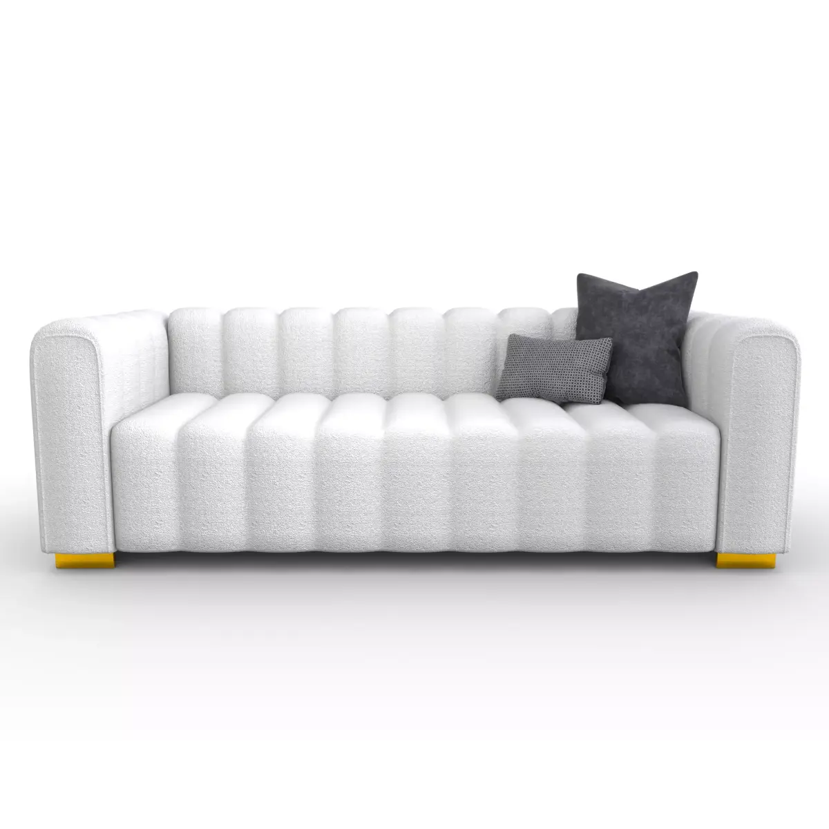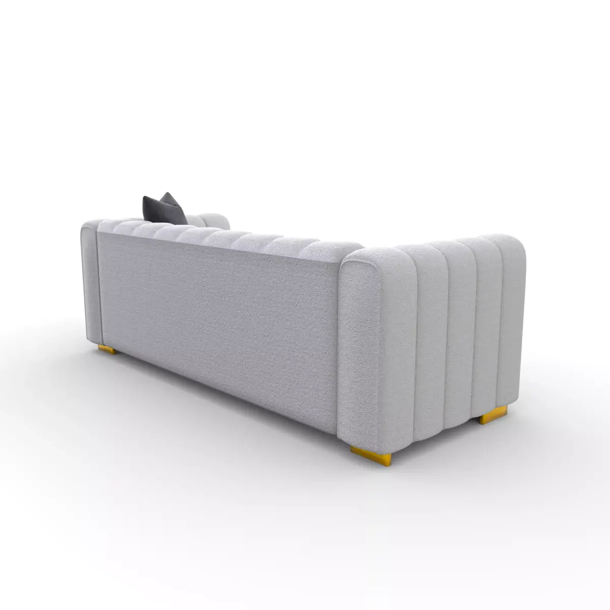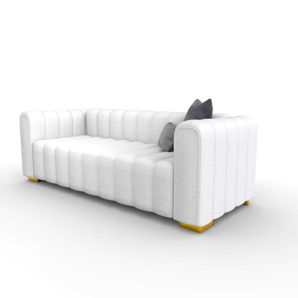 This is a highly detailed, high-quality 3D model of a modern sofa, designed for interior render scenes and close-up shots. The model features a unique design with a textured fabric finish and bold yellow accents on the legs, making it ideal for contemporary settings. It includes textures and is centered within the coordinate system. The light color palette allows it to easily complement a variety of interior designs.