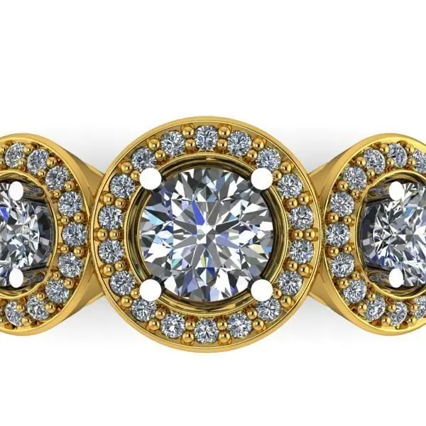 HomeCatalogModern 3 Stone Anniversary Halo Bridal Wedding Set Rings 3D print model