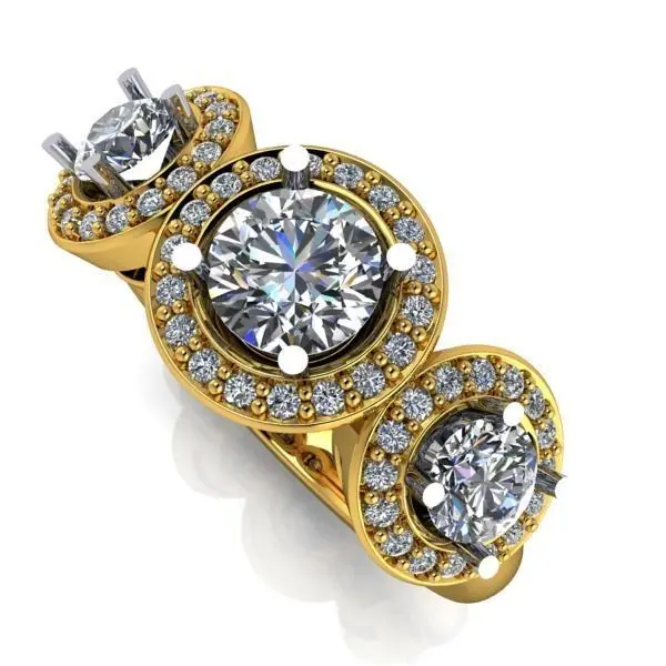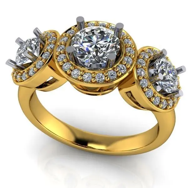 HomeCatalogModern 3 Stone Anniversary Halo Bridal Wedding Set Rings 3D print model