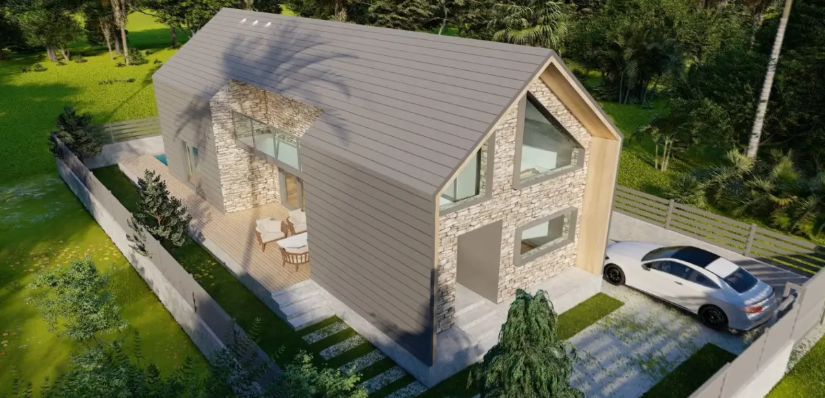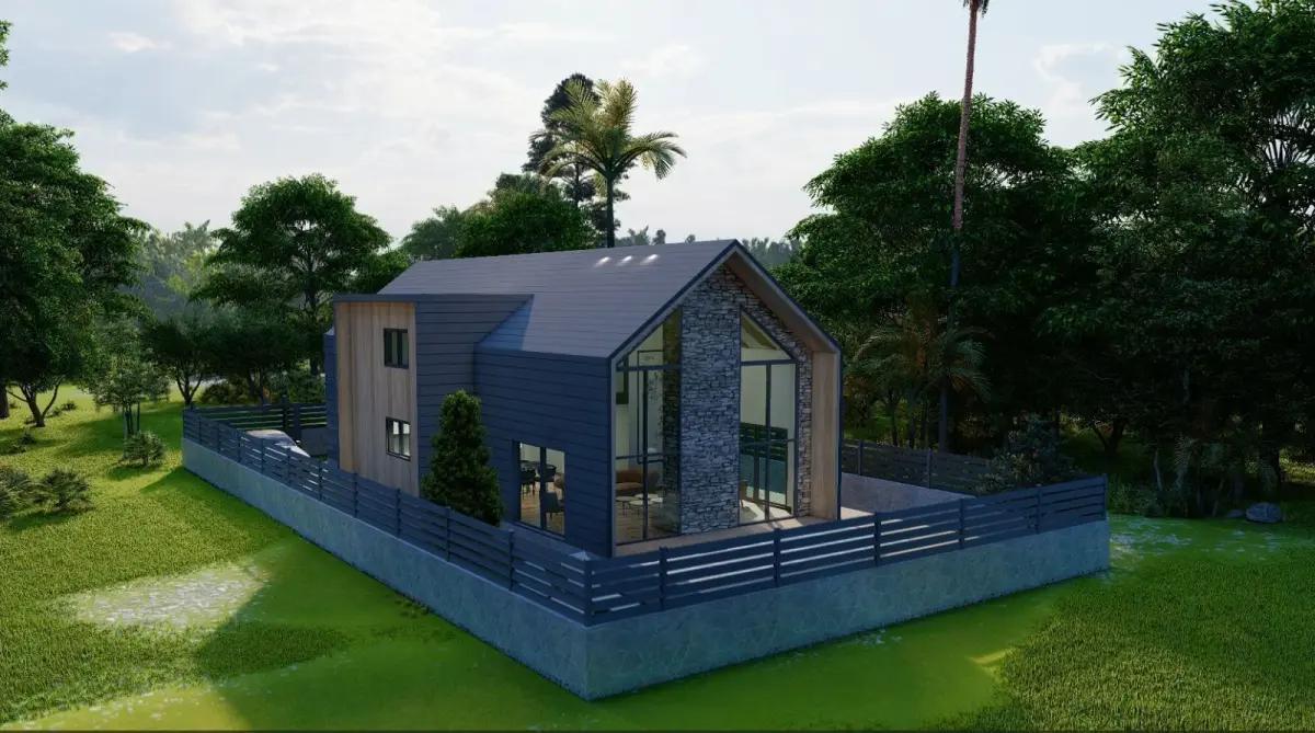 House Height : 7 meter.House Length x Width : 16.60 meter x 6.50 meter.Floor Area: 115 m2.Land Area : 300 m2.3 rooms, 1 living room, an open kitchen, 2 bathrooms.