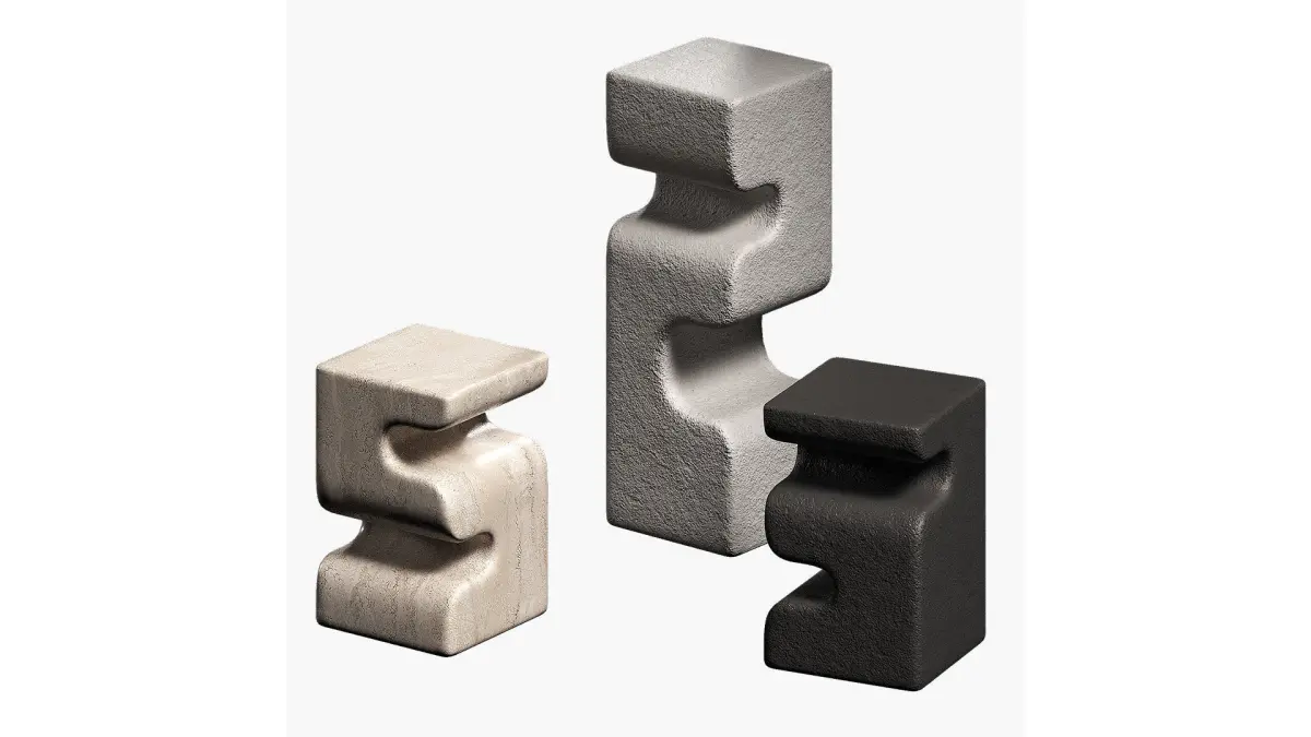 The 3D model contains stone sculptures. Flowing organic shape, rounded stoneIt's easy to change the color to any other through the color map in the material settings.3 color options: black, white, beige stone.Can be used as a plant stand, table, candlestick, decorative figure.