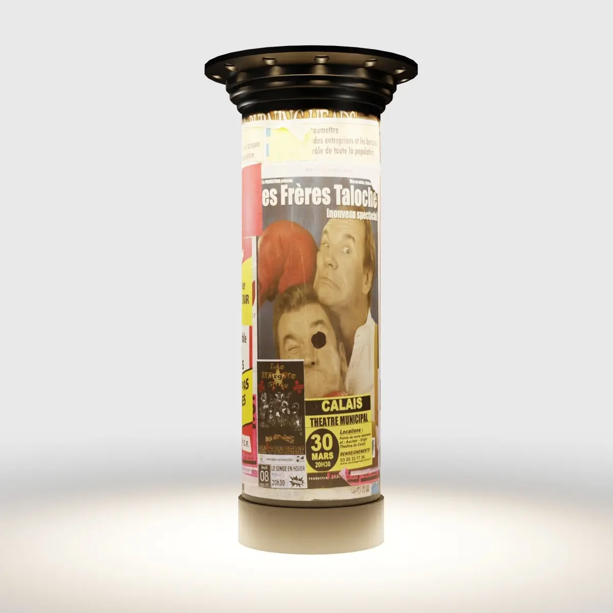 This is a model of a modern style advertising column. It is perfect to populate your cityscape visualizations or as a background filler for archviz projects.Due to its low-poly structure it is best used for backgrounds or non essential parts of your image.