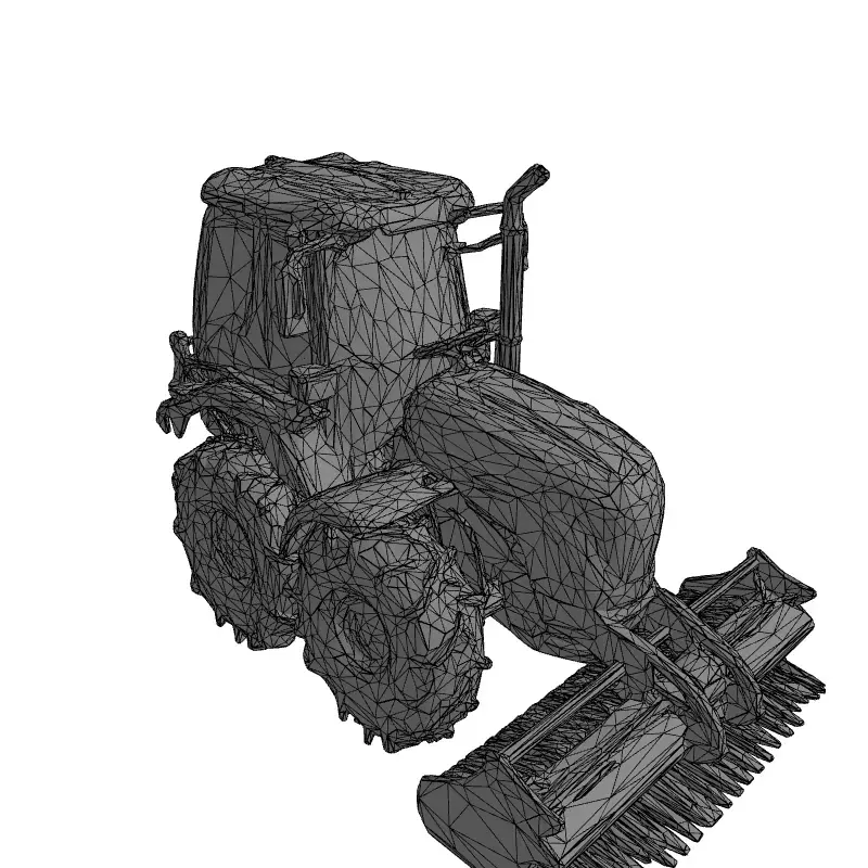 This is a meticulously crafted 3D model of a modern agricultural tractor, complete with a robust front-mounted cultivator implement. The model features a contemporary design, showcasing realistic proportions and intricate details that accurately represent a state-of-the-art farming vehicle. Its high fidelity makes it an excellent asset for architectural visualizations, cinematic productions, and detailed digital art projects. The clean topology and efficient polycount ensure it's also well-suited for integration into real-time applications such as farming simulators, open-world games, and interactive augmented reality (AR) experiences. This versatile model comes fully UV unwrapped, allowing for easy texture application and modification. It is designed with PBR (Physically Based Rendering) textures, guaranteeing realistic material representation under various lighting conditions, enhancing visual realism. Supported file formats typically include GLB, OBJ, FBX, USD, DAE, ABC, and PLY, providing broad compatibility across various 3D software and game engines. While designed for high fidelity, the geometry is well-structured, allowing for further optimization or subdivision as needed for different levels of detail (LODs). This asset is ready to be dropped into your scene, offering a reliable and visually striking addition to any agricultural or heavy machinery project, whether for professional use or creative endeavors.