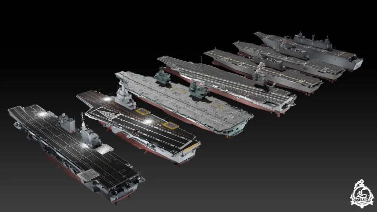 Modern aircraft carrier collection modeled with blender. All models are PBR textured. USS Gerald R Ford, JS Izumo, JS Kaga are UV mixed. HMS Queen Elizabeth, FS Charles de Gaulle, ITS Trieste and SPS Juan Carlos I are UV mapped. Texture size are square in PNG format. FBX and OBJ format supported.