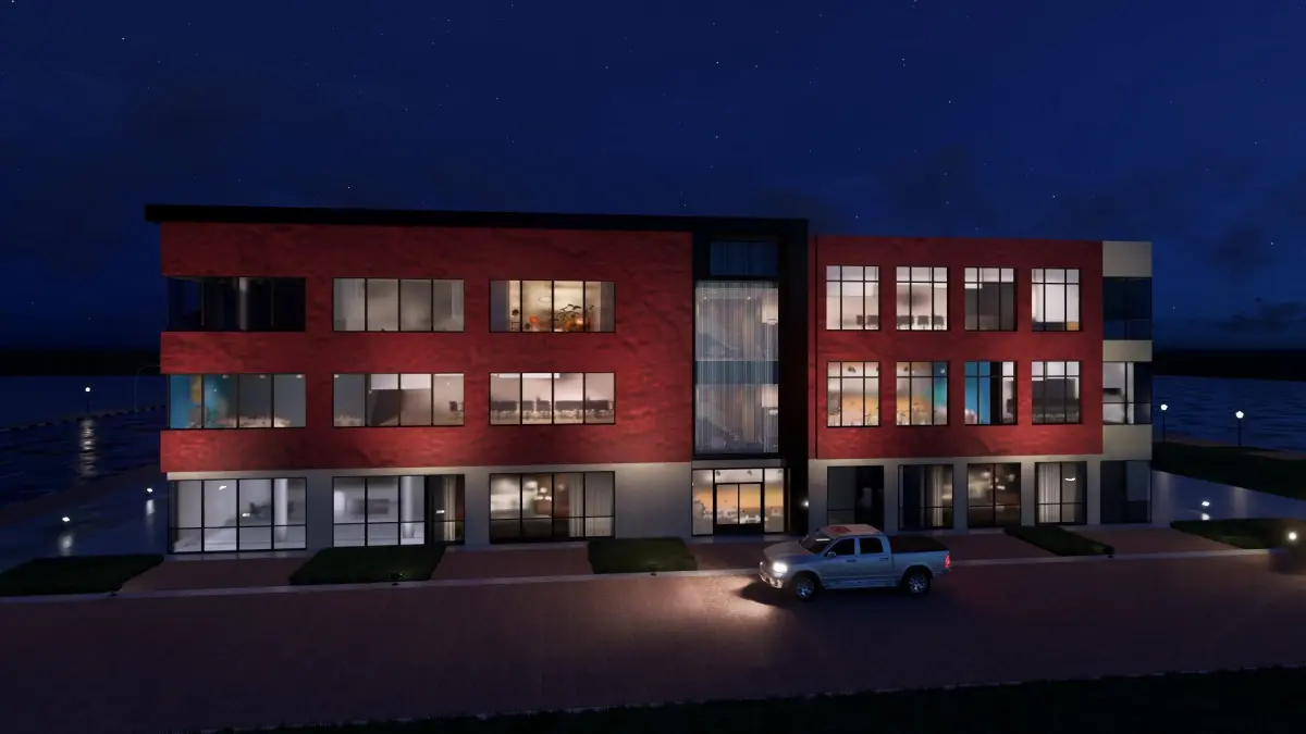 A modern american office building. Can double as mixed used.Clean model. Model detail all all sides.Lumion model included with Parallax interiors for lighting.File formats include: SketchUp, USD, 3DS, OBJ, FBX, USD and Lumion