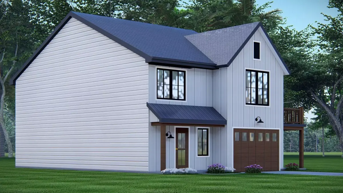 Designed with a clean roofline, horizontal siding, and balanced proportions, this model represents the ideal suburban family home or rural homestead. Its mix of modern simplicity and rustic farmhouse style makes it versatile for various design and visualization projects.