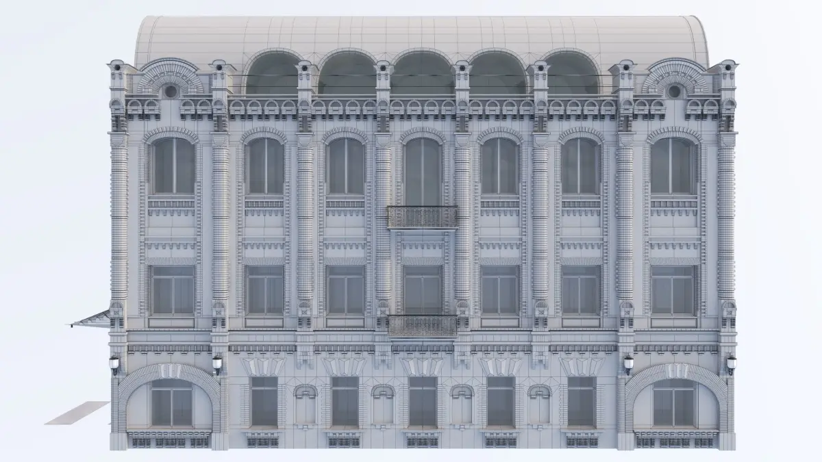 The façade of the remaining historical building on Kyiv Square, which became part of the Hayat Hotel. (Modern, Italian Gothic, and Italian Renaissance.)