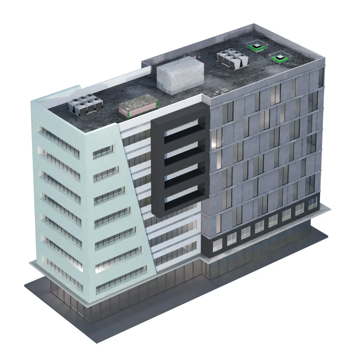 The archive contains model of a modern apartment building. The buildings elements (outside walls, interior walls, glass panels, windows, roof , lamps, rooftope accessories) are 3D models. The plants and people are just plane and textures.Units in meters. No third-party plugin or script required.Polys: 261,621Verts: 248,634 Height: 32m- Width: 42m- Depth: 16m 3ds max file version 2017, Corona renderer 6, Vray 5, Fbx file version 2015 and ObjAll textures exists in the zip file.