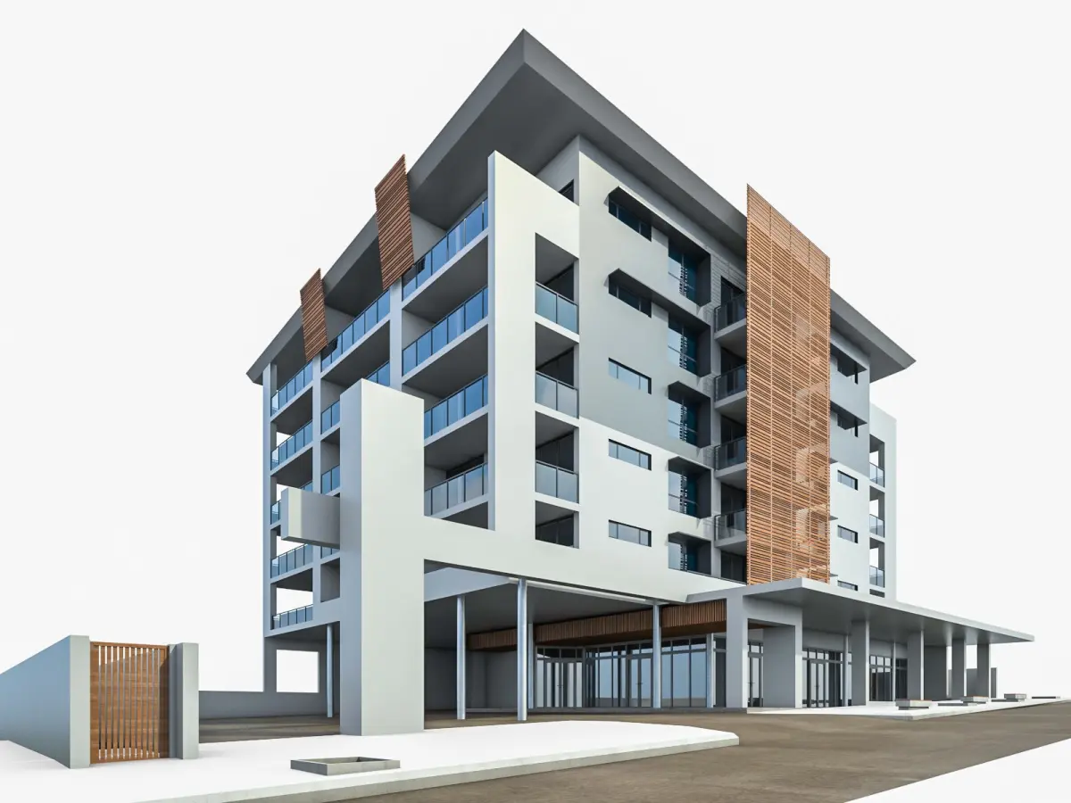This is real-world-size model of Residential Building Exterior with street environment made by professional architect.
