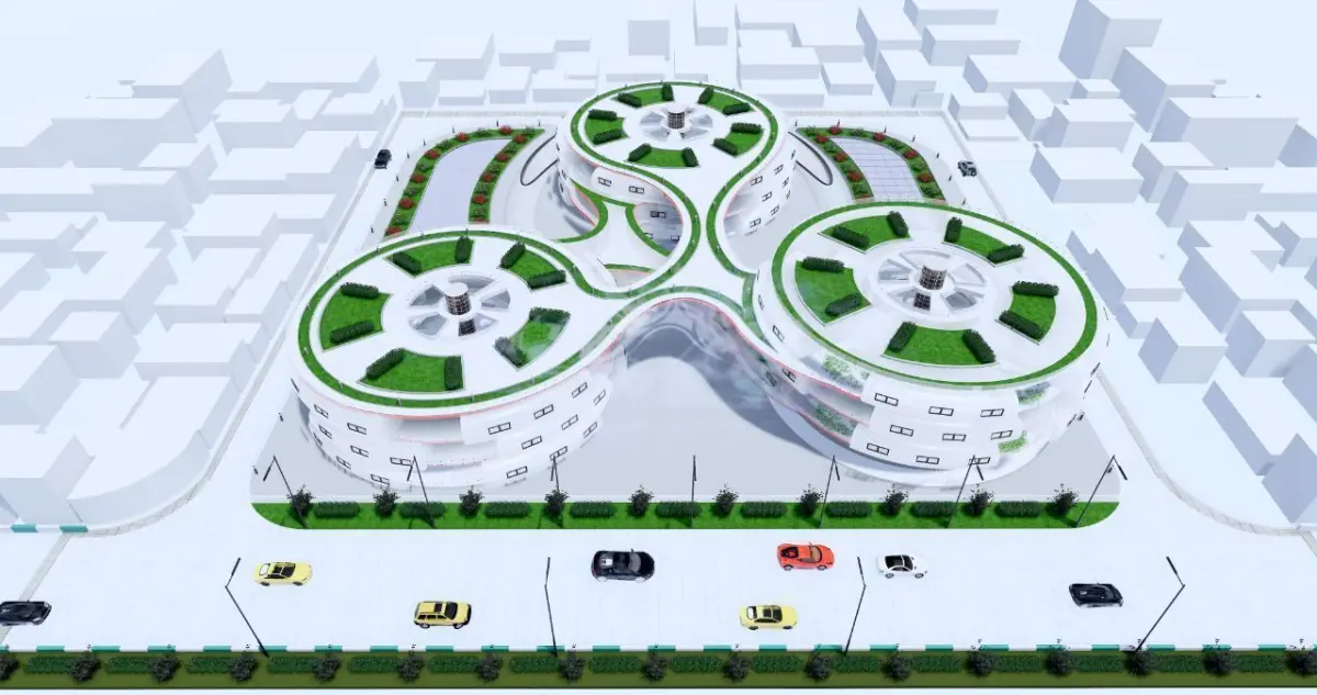 On the ground floor of one block, service spaces are designated, and all three blocks are interconnected based on the main concept, forming communication pathways.