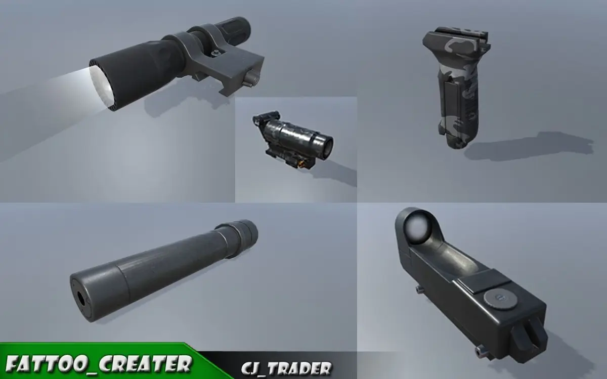 Rigged Model - Yes3D Models - AR gun model, silencer,supressor,tactical flashlight 3d model,scope,sight,vertical foregripTextures - High qulity diffuse, ambient, spectular, normal map,FBRAvailable In - Fbx,Obj,3ds,Abc,Dae