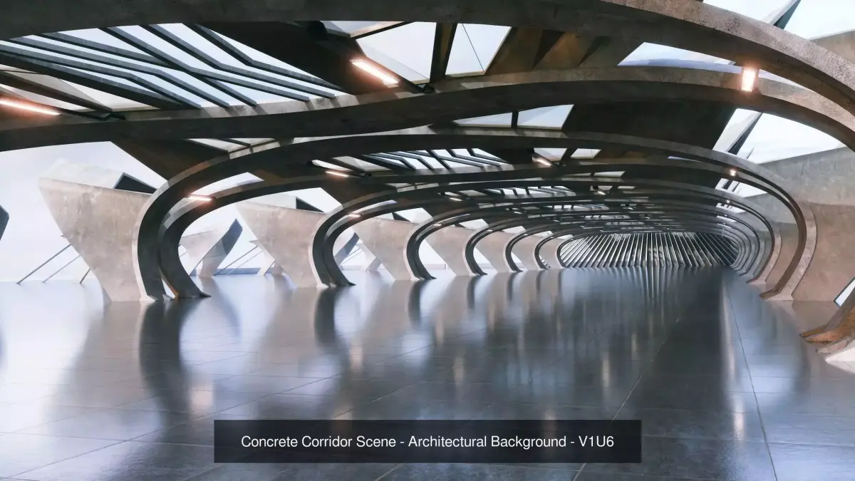 - Concrete Corridor Scene - Architectural Background - V1U6