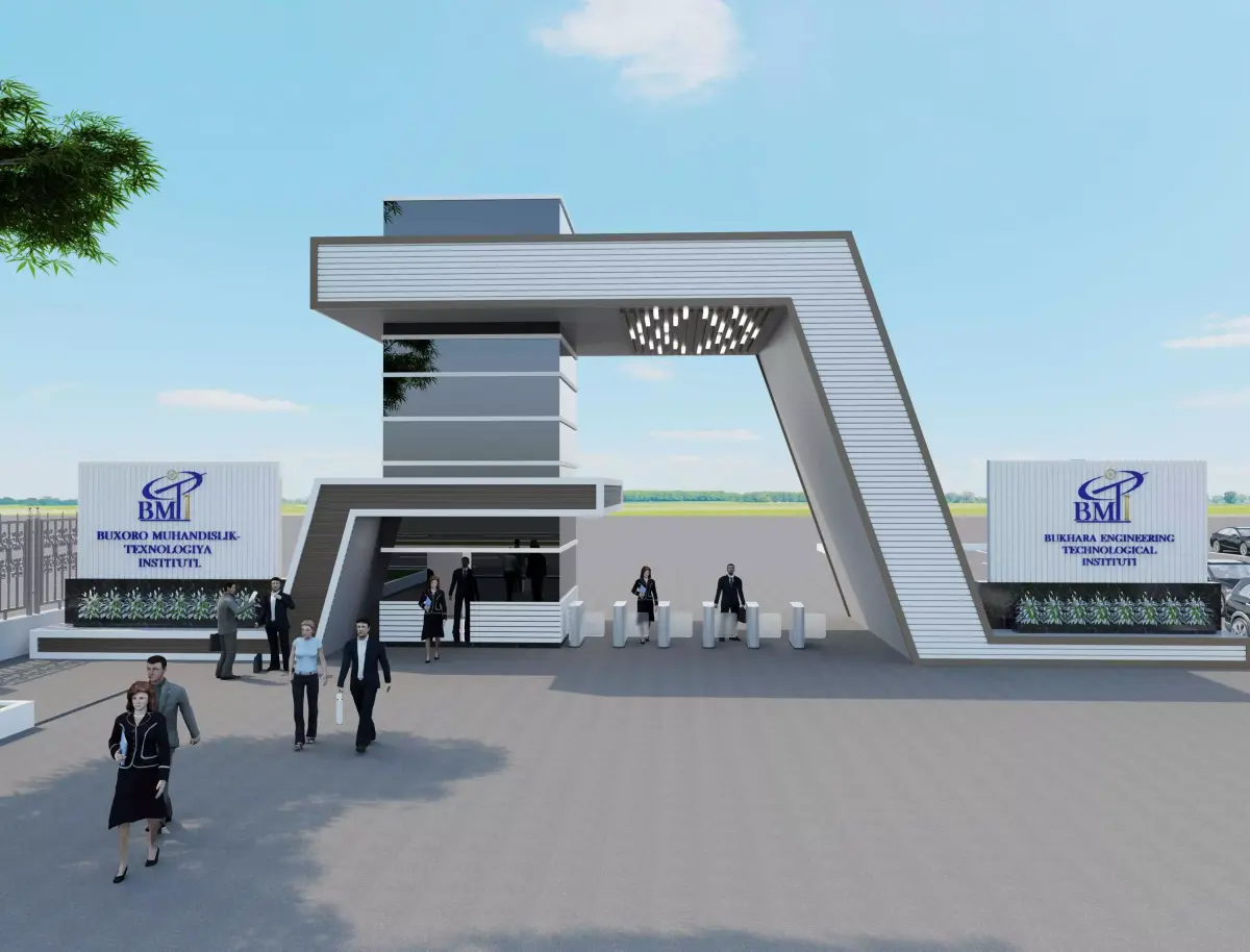 "A high-quality 3D model of a Modern Architectural Entrance Gate/Portal designed with a clean, striking, and contemporary aesthetic. This structure is perfect for high-end architectural visualization (ArchViz) projects such as luxury residential compounds, corporate parks, convention centers, or private estates that require an impressive and secure access point.