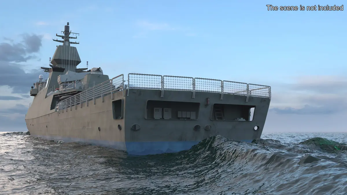 Modern Armed Warship Naval is a 3d model of naval vessel specifically designed and equipped for military operations, featuring advanced technology and weaponry to engage in combat, protect maritime interests, and support various military missions.
