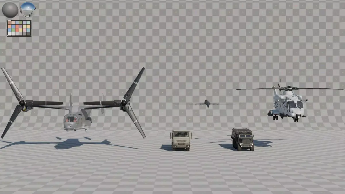 Warfare Vehicle Pack. Modern War Planes, Helicopter, Trucks, and Drone.The pack contains military vehicles such as trucks, drone, osprey fighter plane, helicopter, and armored vehicles (truck). the osprey and the drone both contain cameras and targeting systems as well as guns and munitions. the attack helicopter aircraft is also decked out with tools attached to the chassis.The asset is high fidelity making it both game-ready & cinematic ready.The asset is also 3D printable by simply importing the file and exporting it as a .stl and adding it to the slicer of your choice.UV mapping..fbx, .obj, .blend files availableTexture files provided.