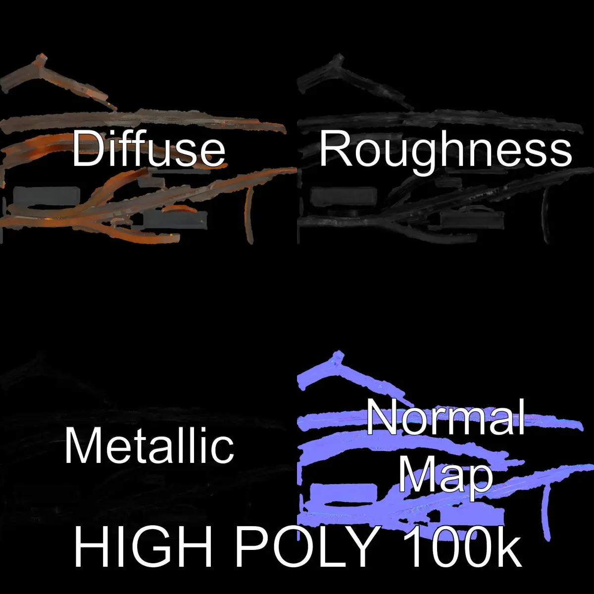 This modern art sculpture model pack includes a detailed representation of intertwined metal rings. Each model has three levels of detail: low-poly (1000 triangles for mobile), middle-poly (10,000 triangles for environment), and high-poly (100,000 triangles), making it suitable for production rendering, game engines, and interactive presentations. The model's PBR textures include Diffuse, NormalMap, and reflection/roughness/metallic maps, perfect for any modern rendering engine. All models are accurately unwrapped with no overlapping UVs. This sculpture model can be used in architectural visualizations, interior design projects, and art installations. All textures are 4096*4096 in size. The first image is the reference used for creating the 3D model. It is important to carefully evaluate the quality of the model by examining the preview images that display the topology and polygonal mesh. These previews (WIRE and WEB 3D Preview) clearly demonstrate how accurately the model matches the original reference and how well the geometry has been executed. If you like it, please give it a like and leave a comment!