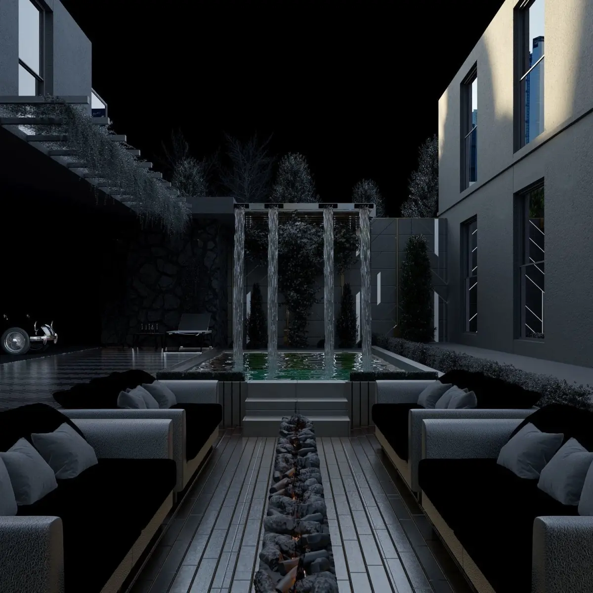 .Rar inside; 1) 2019 .max - Render Photography - Hdr -Maps - Proxy available. Realistic rendering and settings complated. Ready-to-use textures and maps.Get inspiration for your backyards with modern architecture.