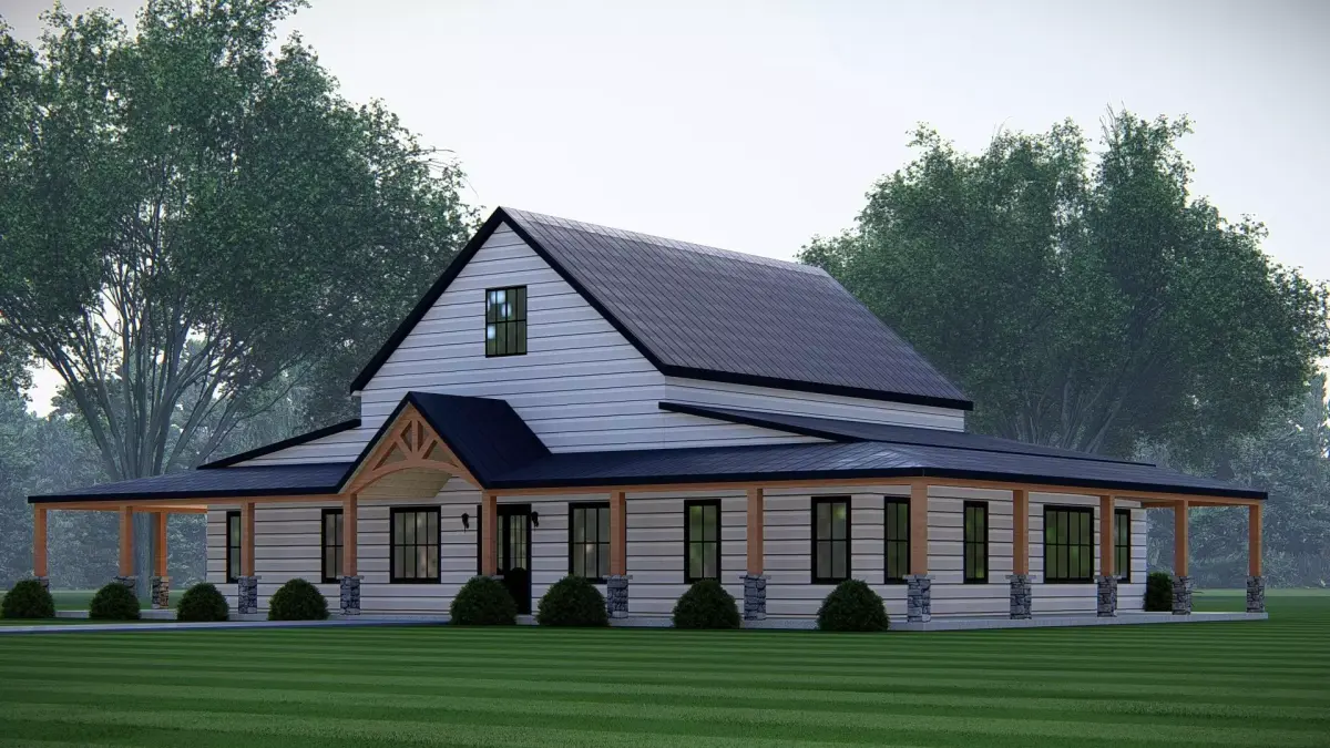 Home Catalog Modern Barndominium House 3D Model with Rustic Metal Siding 3D model