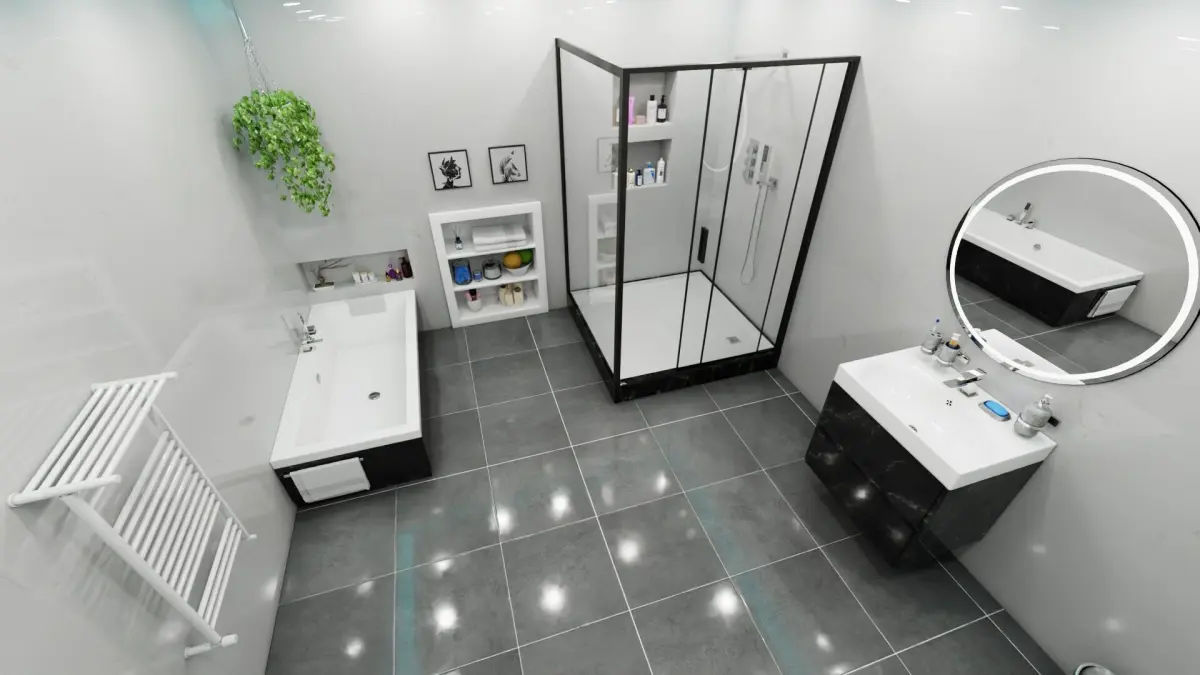 Photorealistic, high-quality 3D model of 'Modern Bathroom & Toilet' Created with Blender 4.4. The model is suitable for Ultra HD rendering and ready for close up shots.The model rendering quality shown on product previews.