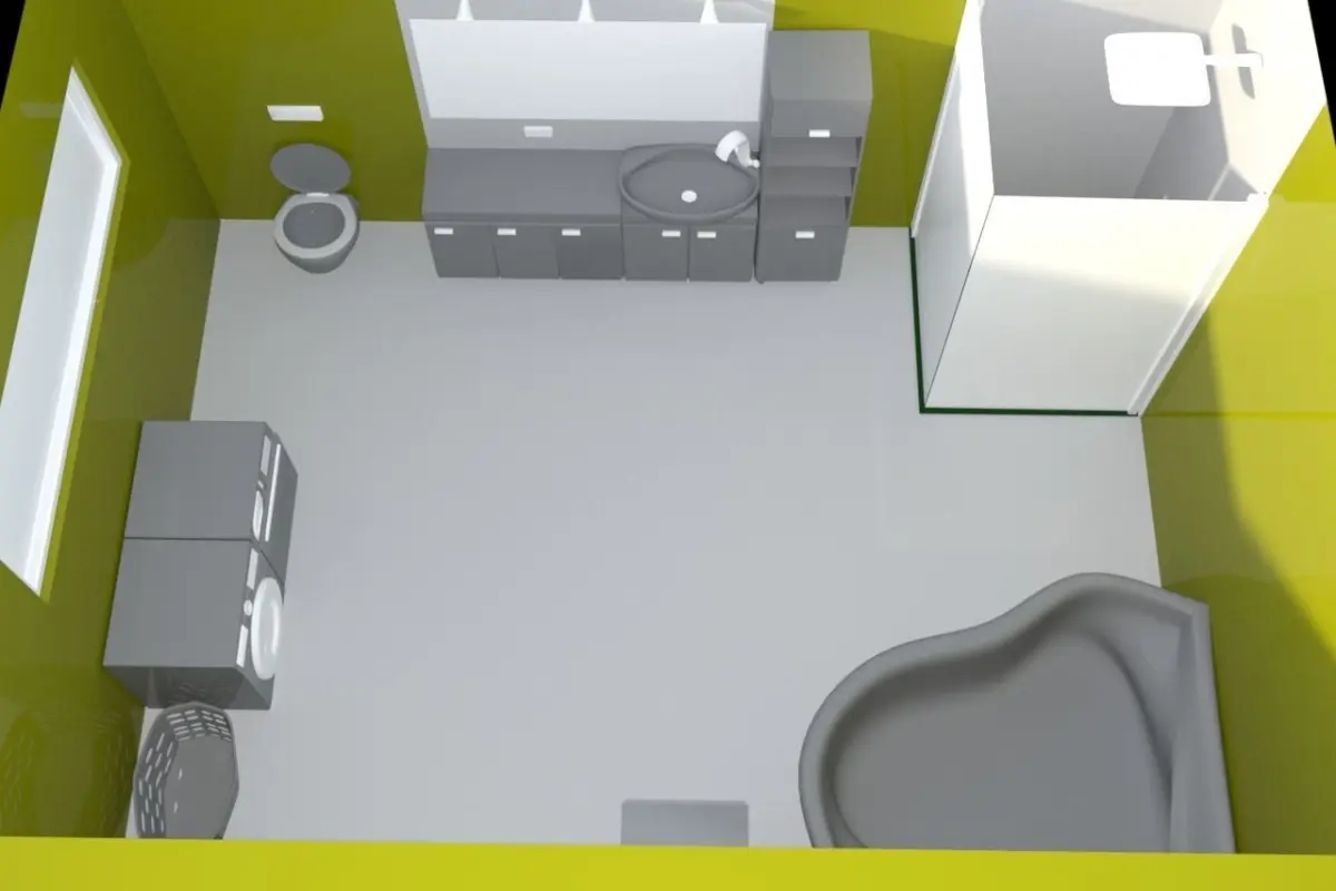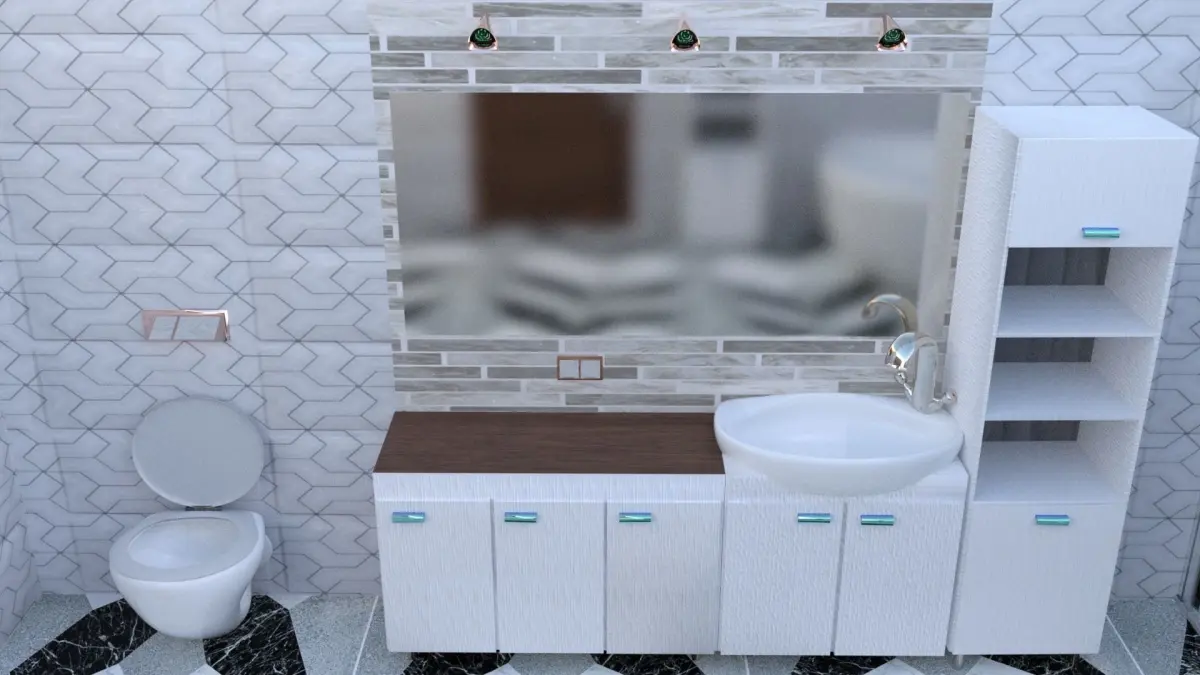 HiApartment design of bathroom with all bathroom furniture, bath, washing machine, and dryer. And many many smaller details like lamps, handles, buttons, etc.Very easy to add texture to all parts of all objects.Available in few most popular format filesHighly recommend