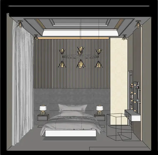 the scene contains a bed, credenza, dresser, lamp, curtain, etc, and other furniture. the original model in 3d is made in sketchup 2018. it contains materials and texture.ready to deliver. thanks for downloading.available in multiple formats. do you want the design of some space? contact me