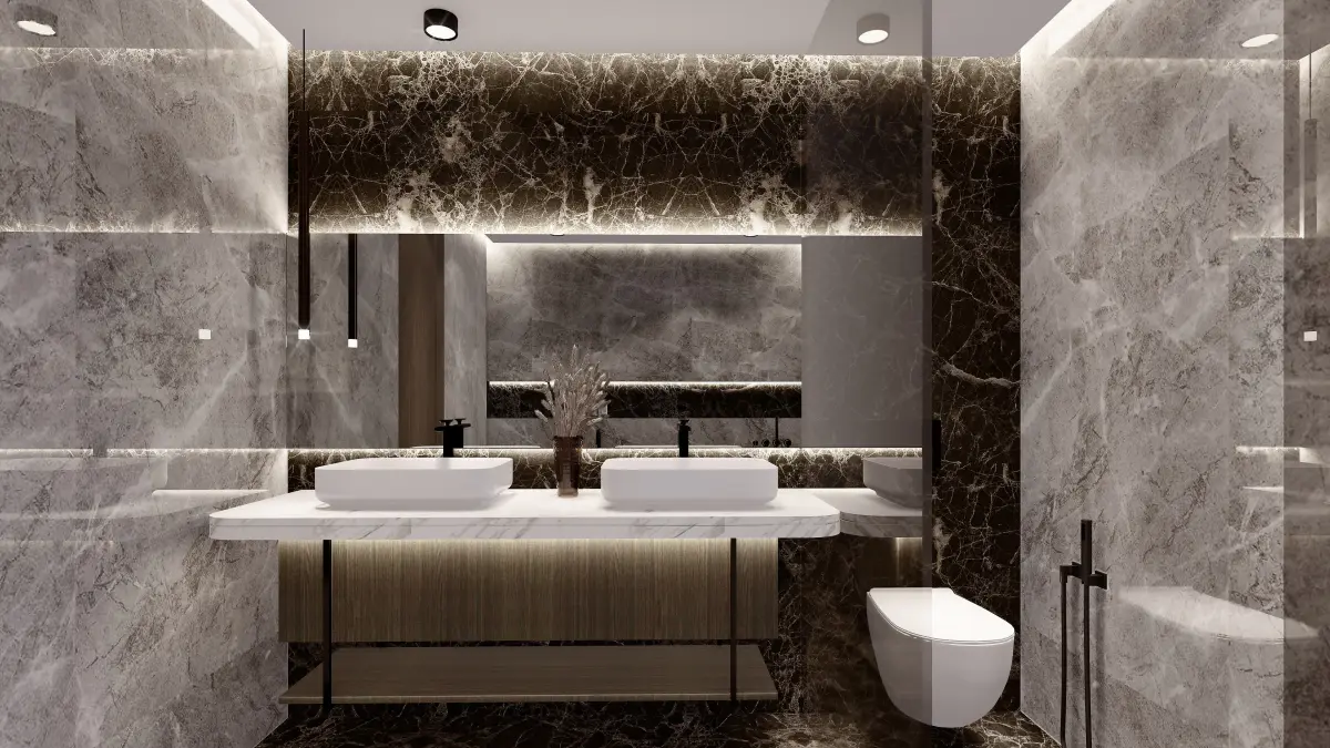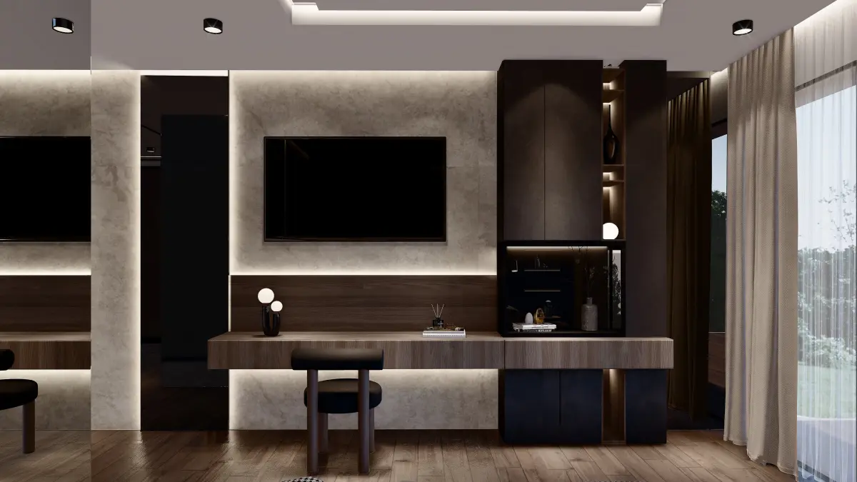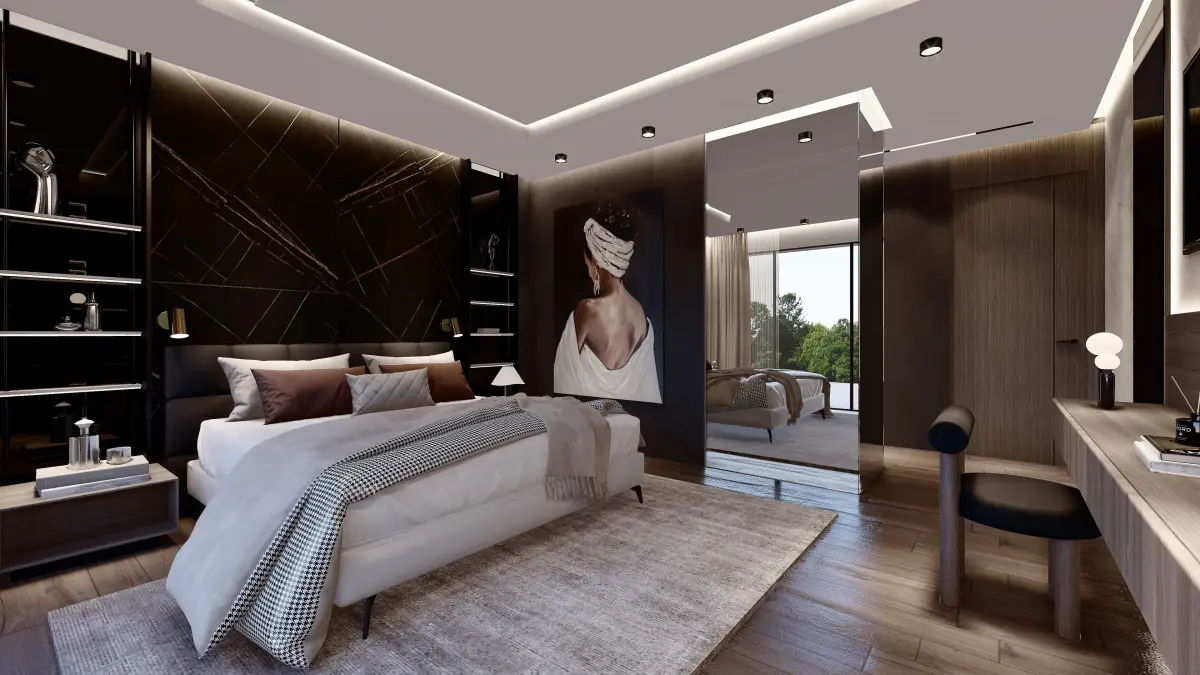 Modern interior bedroom with bathroom and dressing room designed by a professional architect and an interior designer. Modeled in Sketchup . Textures also included .