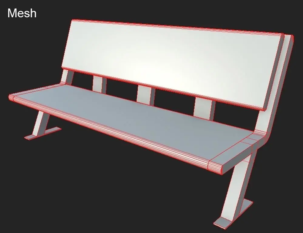 A lowpoly modern bench based on real reference.This is a game asset made with realtime rendering in mind.