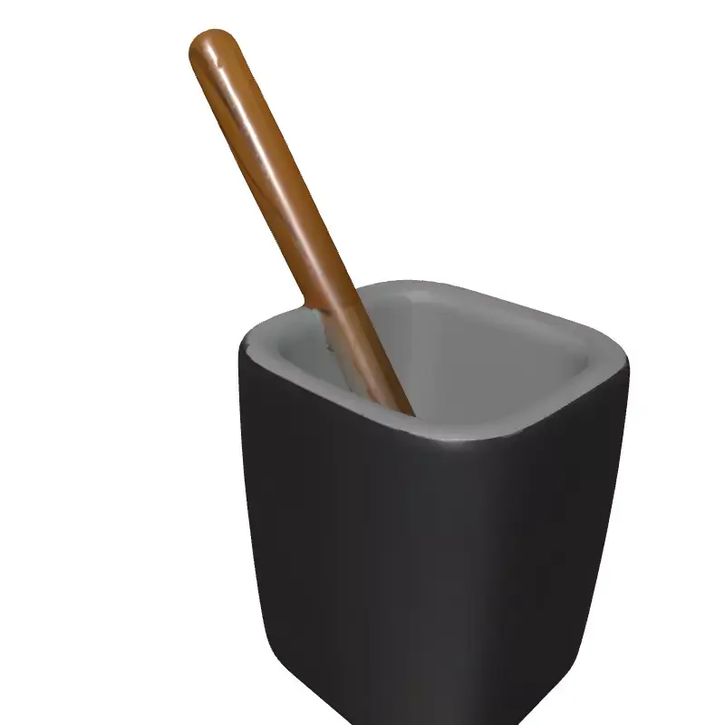 This 3D model presents a sleek, modern, and minimalist holder, featuring a dark, matte finish and subtly rounded edges. It comes complete with a slender, natural wood stick, hinting at its versatility as a kitchen utensil holder, a stylish desk organizer, or even a small decorative planter. The clean design makes it an ideal asset for a wide range of digital projects, from architectural visualization scenes needing contemporary kitchen or office props, to real-time applications such as game development and augmented reality (AR) experiences. Its optimized geometry ensures efficient rendering without compromising visual fidelity, making it suitable for both real-time and static renderings. The model boasts clean topology, which makes it suitable for both immediate use in low-poly environments and for subdivision should higher detail be required for close-up renders. It is fully UV unwrapped for easy texture application and is designed to integrate seamlessly with PBR (Physically Based Rendering) workflows, providing realistic material representation. Supported file formats typically include GLB, OBJ, STL, ABC, DAE, FBX, USD, and PLY, ensuring broad compatibility across various 3D software and engines. This asset is ready to enhance any modern interior rendering or virtual environment with its sophisticated simplicity and functional aesthetic.