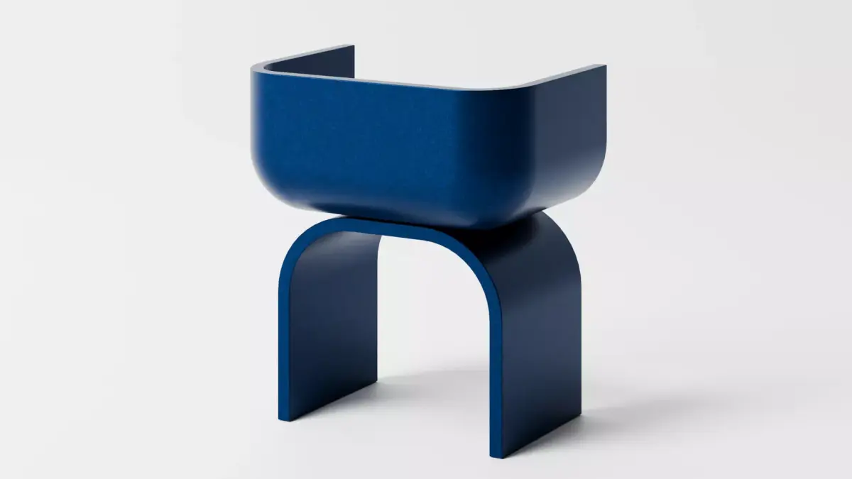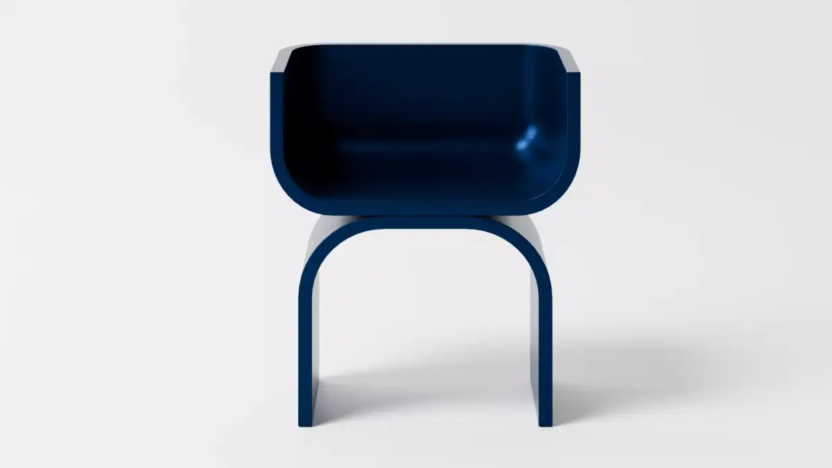 The chair is finished in a deep blue material with a subtle sheen, giving it a refined, premium appearance suitable for close-up renders. Its abstract, design-forward form makes it ideal as a statement piece in modern interiors, galleries, concept spaces, and high-end product visualizations.