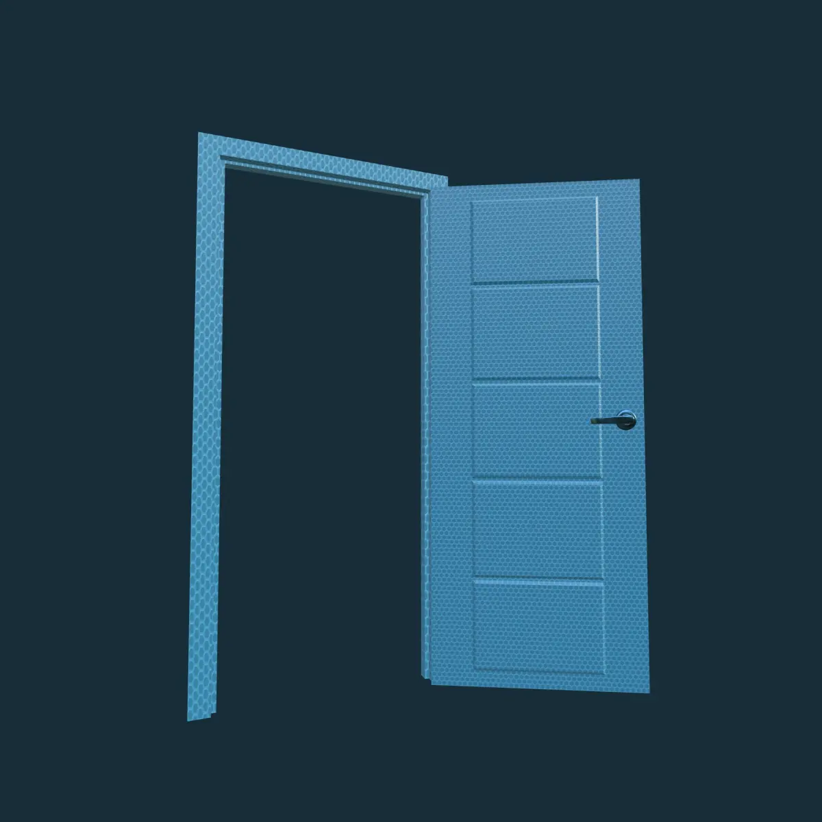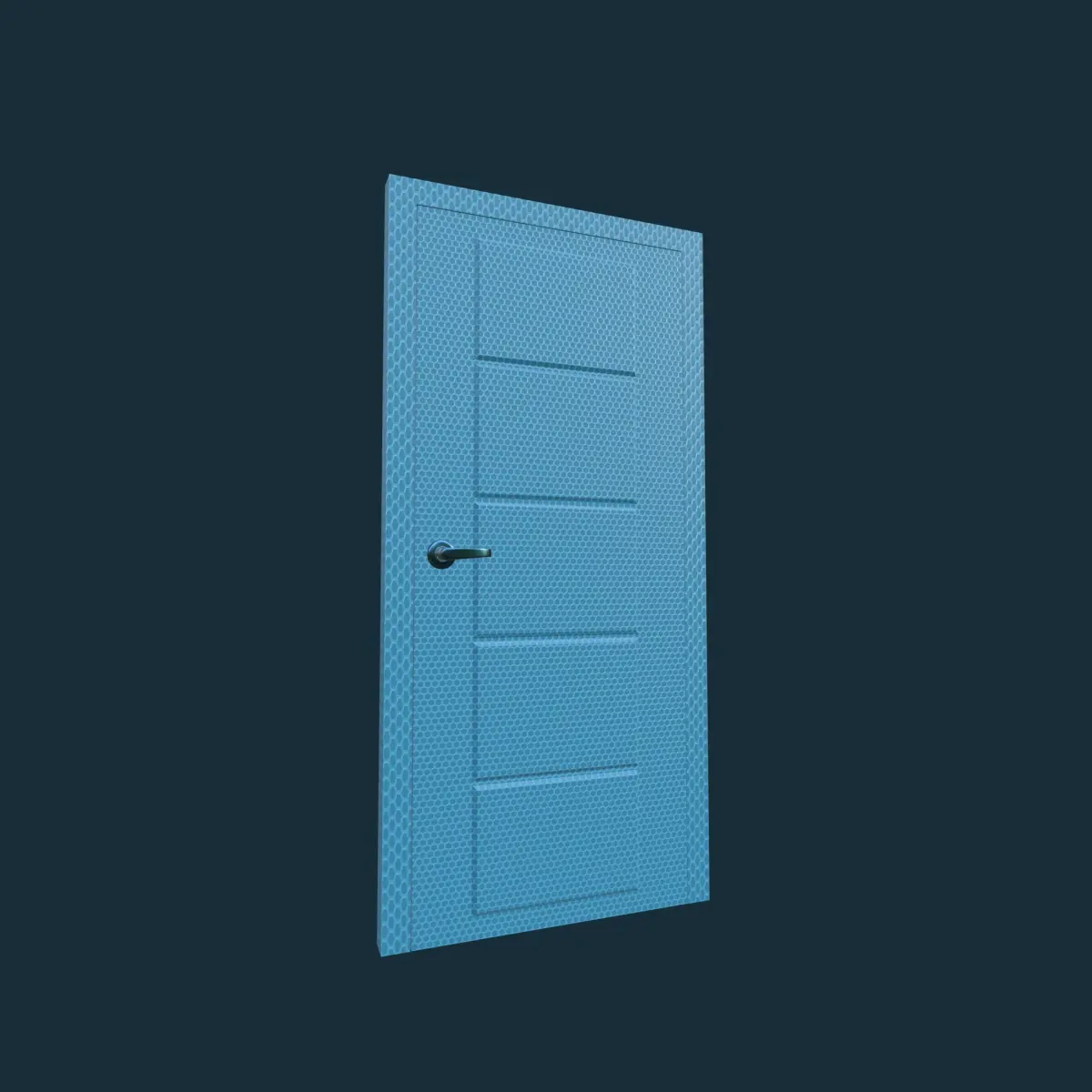 This 3D model showcases a modern interior door with a geometric blue pattern, perfect for contemporary or futuristic room designs. The model is created in Blender with precise geometry, clean topology, and high-quality 2K PBR textures. Ideal for architectural visualization, animations, or game environments that require stylish interior assets.