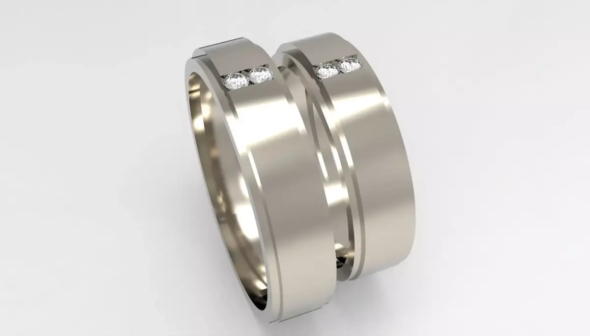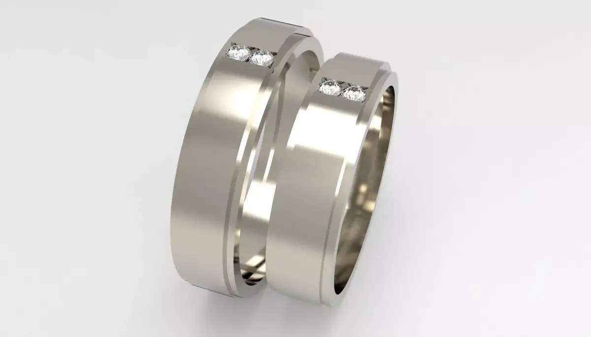 This contemporary wedding ring set redefines elegance through geometric precision and minimal design.Crafted in polished white gold, the squared band silhouette exudes strength and sophistication, symbolizing unity with modern sensibility.Each ring features a subtle cluster of diamonds, seamlessly set to reflect harmony between masculine structure and feminine grace.Perfect for photorealistic jewelry renders, animations, and product visualizations, this model delivers ultra-clean reflections, balanced proportions, and a luxury aesthetic ideal for fine jewelry showcases.A statement of timeless love shaped by modern artistry and precision craftsmanship.Men's Ring Size: 62 EuroWoman's Ring Size: 54 EuroFor any edit or revision: DM +447301387795 / +447350761213 or elpouriapaypal@gmail.com