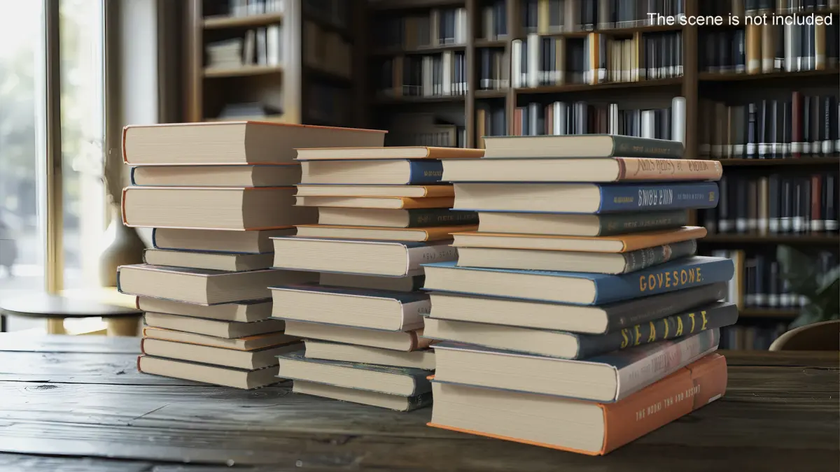 Modern Books Stack is a three-dimensional model of books stack or pile, that consists of multiple books placed on top of one another (vertically aligned).