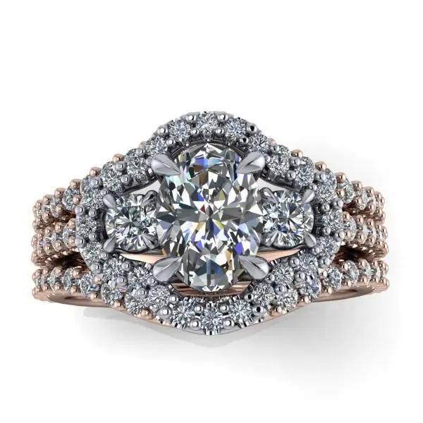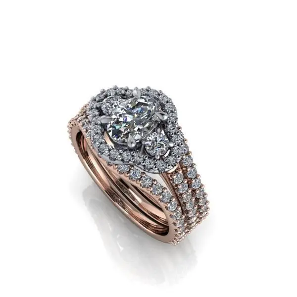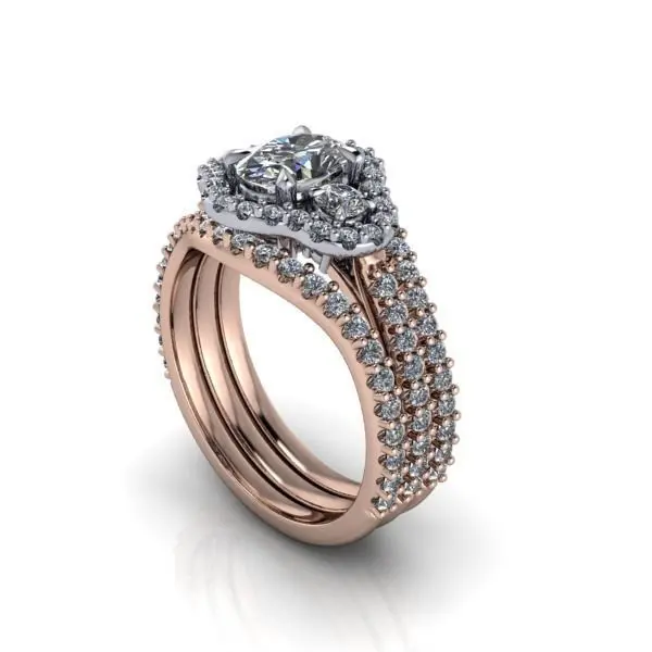 Beautiful Modern Bridal Ring Oval cut center stone matching wedding band Halo, This ring is designed in size 7, It has matching wedding bands.Its STL file and ready for 3D printing , Please look at the pictures for more information.