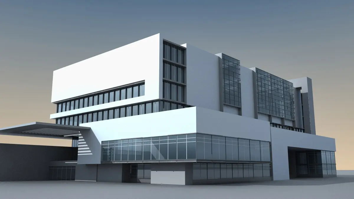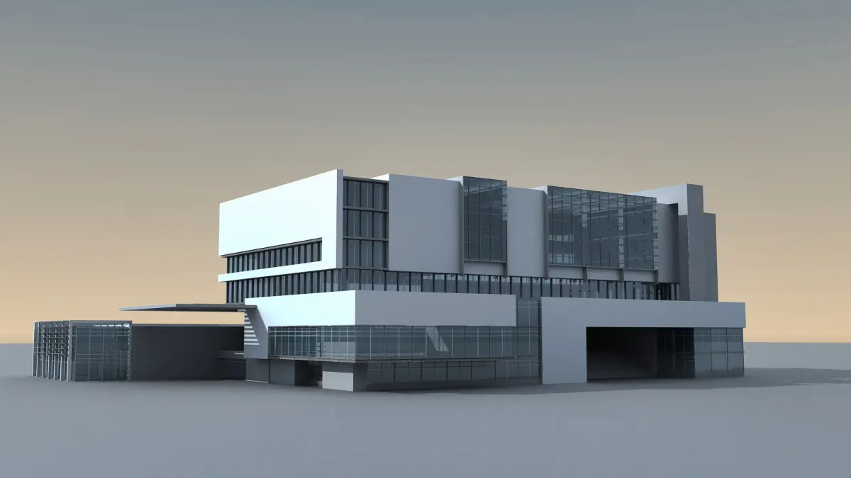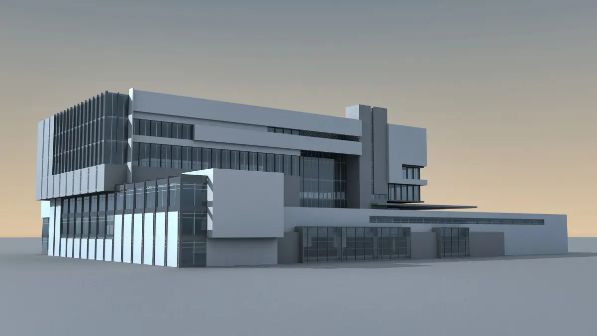 This is detailed 3d model of a modern/futuristic looking building.