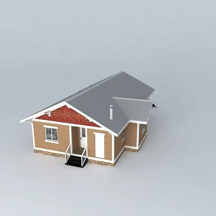 This 3D model was originally created with Sketchup 8 and then converted to all other 3D formats. Native format is .skp 3dsmax scene is 3ds Max 2016 version, rendered with Vray 3.00 Here is a modern craftsman-style house for a small southern California community! Take a full tour of it both inside and out. The layers menu is available so you can view or furnish this house with ease. The roof is metal and you will see brackets and shingles in the gables. The windows are mostly sliders however the front window is double hung. You get an open floorplan in front with your private quarters behind. Even though this house is new, like the old kit homes, it has 2 bedrooms and 1 bathroom. The kitchen is complete with a refrigerator, double sink, dishwasher, gas range w/ oven, a pantry, and plenty of cabinets. The house sits on a crawl space foundation. There is a shed and mechanical hook-ups in the back of the house. Enjoy it. Rate it please. For more houses and architecture, you can find it on my Facebook page found by the link below :)