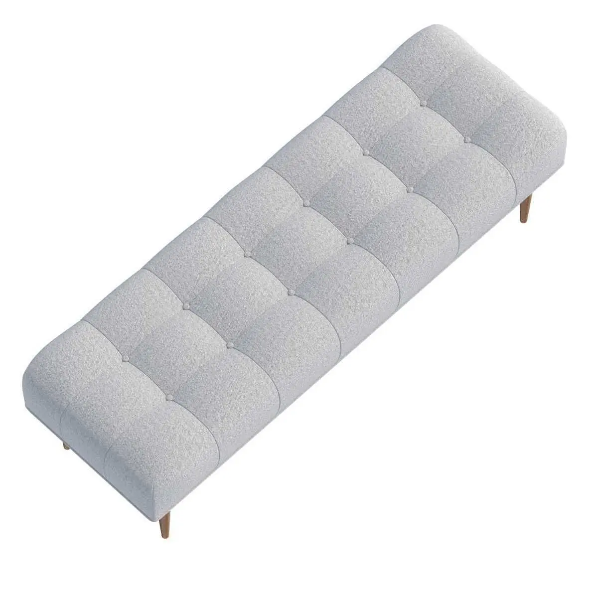 Modern Button Tufted Bench Upholstered in Pale Grey with Walnut Spindle LegsMade to be both durable and responsible, this bench is handmade with a hardwood frame of FSC certified poplar, corner blocks of reclaimed oak, webbing suspension of renewable jute, and premium high density foam cushioning for years of comfort. Shown here in Maharam’s Divina Melange #120, this bench can also be built in a vibrant palette of colors. All fabrics are traditional 100% wool upholstery felt and swatches are available by request.