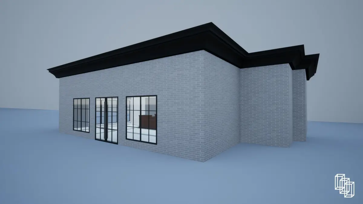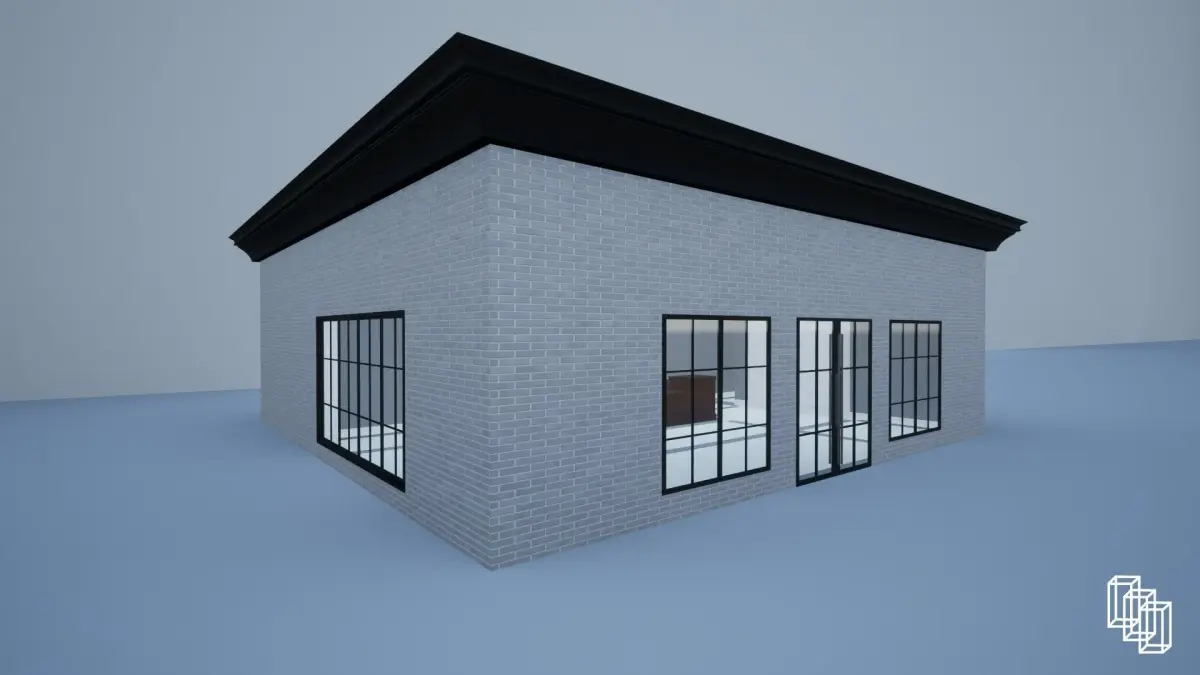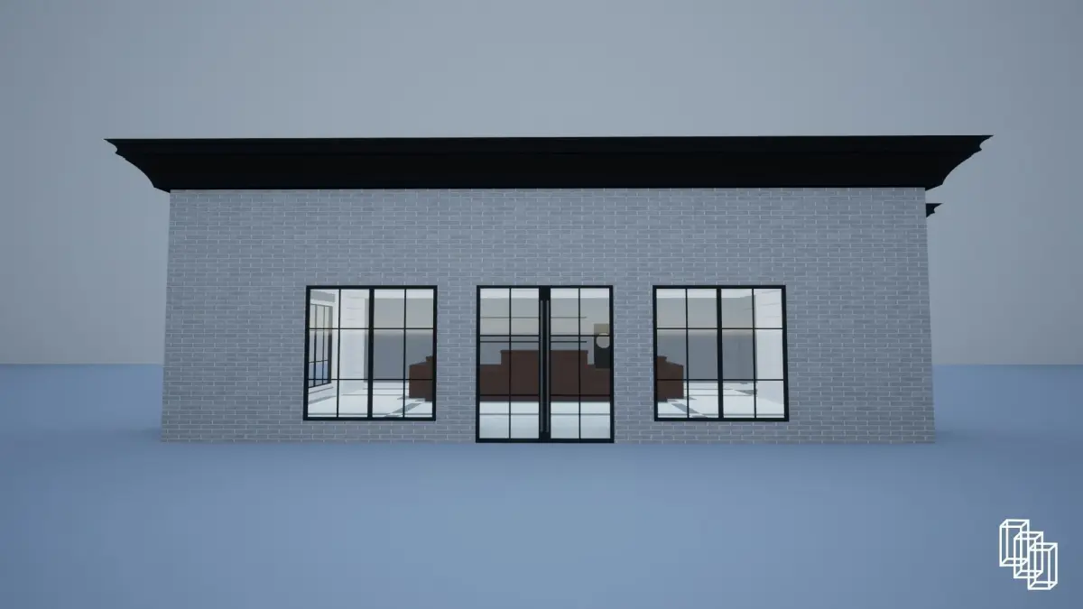Small intimate cafe with a main room, kitchen, and bathroom.