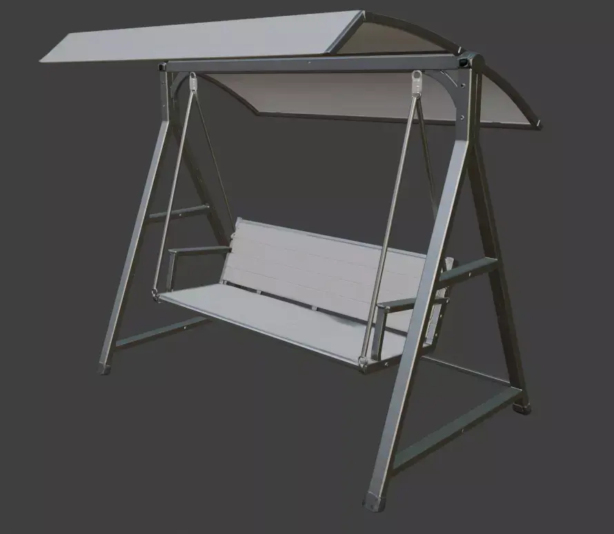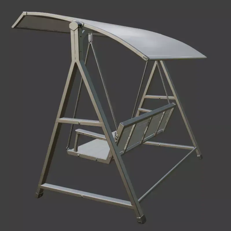 This stylish modern swing 3D model features a sturdy metal frame with a curved canopy top for shade. It includes a comfortable bench seat with armrests and thick ropes for hanging. Perfect for garden, patio, backyard, or poolside scenes. Great for architectural renders, game environments, or home design visuals. Comes with clean geometry and PBR textures for realistic results. Easy to use in Blender, 3ds Max, Maya, Unreal Engine, Unity, and more. Multiple file formats included (FBX, OBJ, BLEND, USDZ, GLTF, STL.). Add this elegant canopy swing to your outdoor projects today!