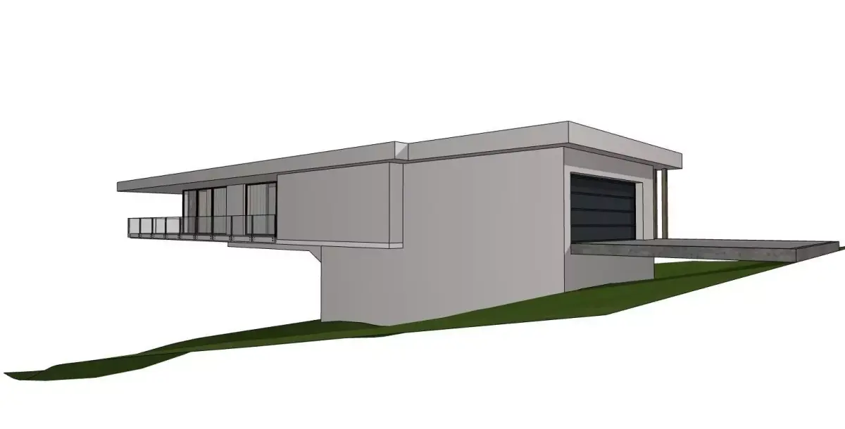 Integrated garage with an extended slab suitable for driveway presentation or car-related render scenes.