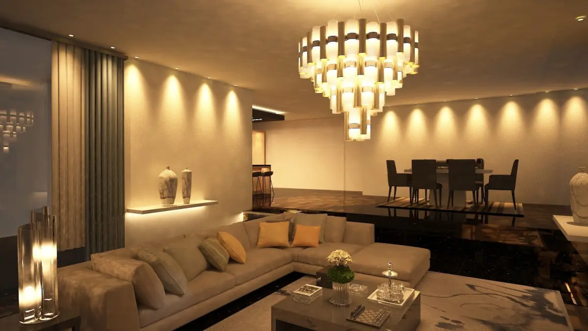 Modern LED chandelier which comes in different finished, Gold, Gradiant & white, it can be used in different areas in the house or restaurants, hotels, bars, it gives a warm feeling to the place.