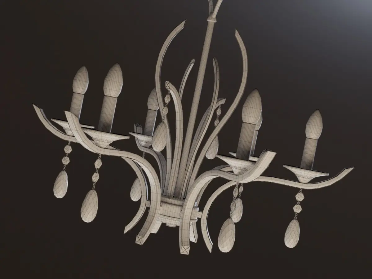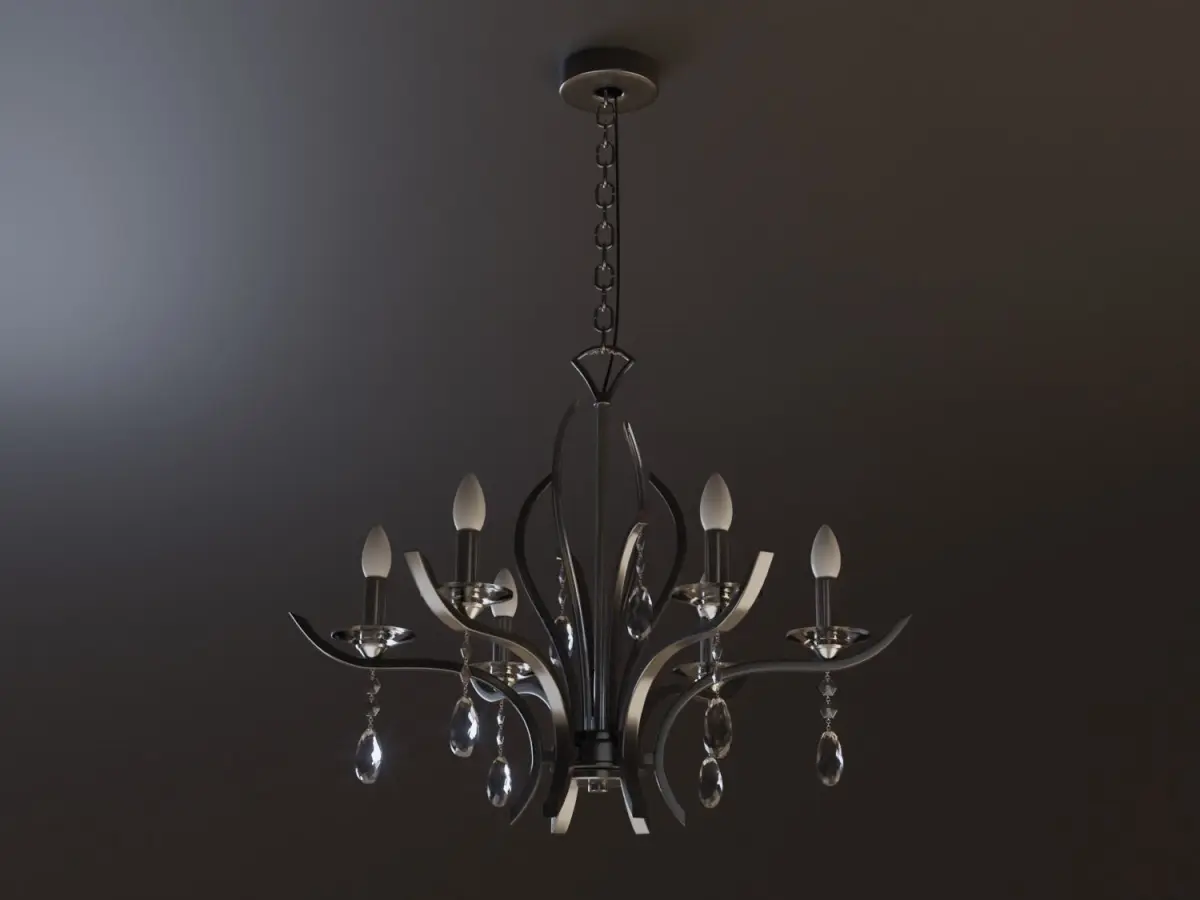 Realistic 3d model of a modern chandelier hanging on a chain with metallic and glass elements which fits perfectly to almost any interior. Materials for Cycles Render (using principled BSDF only in 2.79+) included in .blend file and in addition one more .blend file with scene used for preview renders. The model has 2 objects: -chandelier - 29436 polygons, subdivision-ready for closeups, smooth shading.-chandelier_flat - 2624 polygons, flat shading.