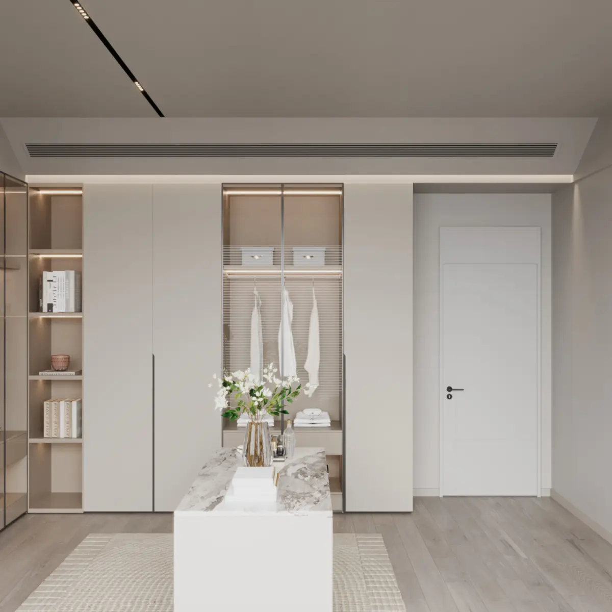 his fully textured Modern cloakroom scene with natural light setup, is ready to render with Corona Renderer for 3D Studio MAX. Inside the rar file you’ll find materials, textures, Skylight setup, cameras settings, Corona render settings and VFB settings.