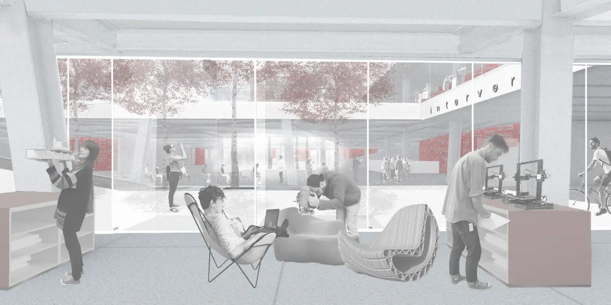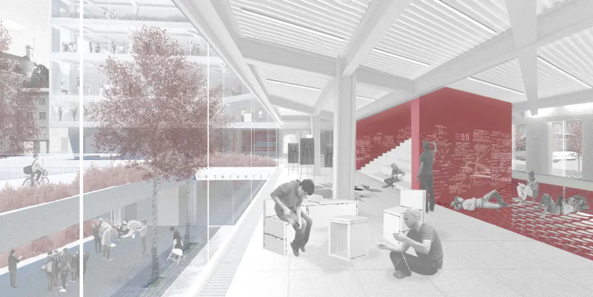 The project is based on the issue of the spatial organization of the University of Ljubljana, which shows the spatial malnutrition and physical enclosure of our higher education institutions. An additional obstacle is seen from the fact that 66% of faculties are not earthquake safe and in the event of an earthquake, the study process in the faculty premises will be forced to stop. By installing a new program of the university junction, not only do I enable the continuation of educational processes, but I am also responding to upcoming social trends, workspaces of the future and new forms of study.