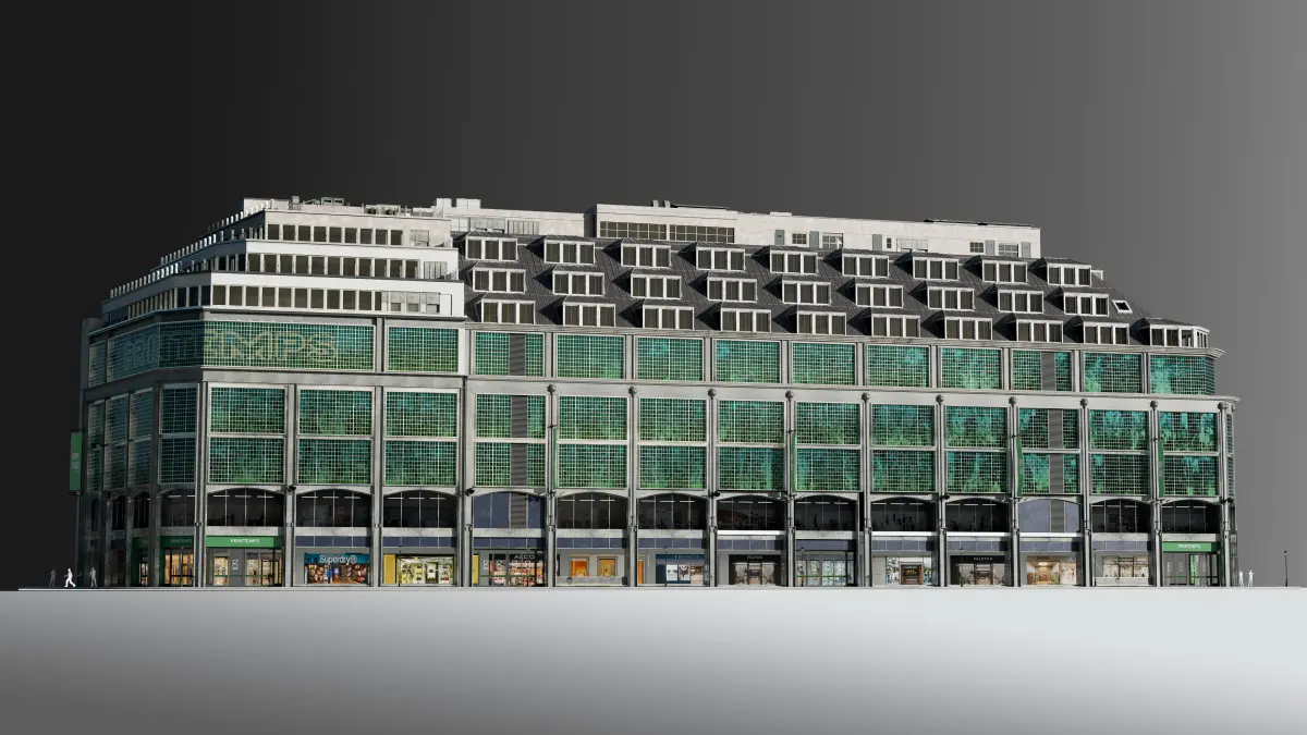 Window and surface materials are configured for random variation for instances ensuring each instance has unique surface details.